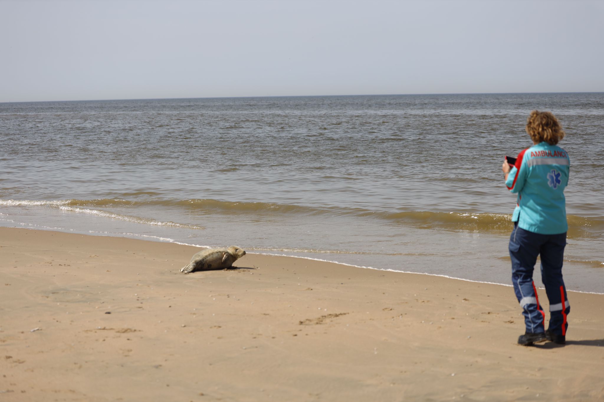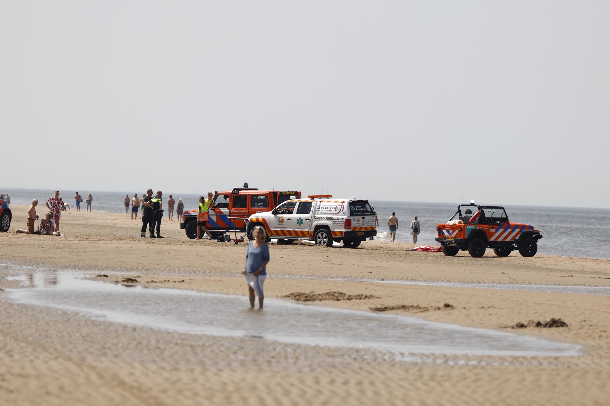(foto’s) Dierenambulance overrijdt vrouw die zeehond fotografeert op strand