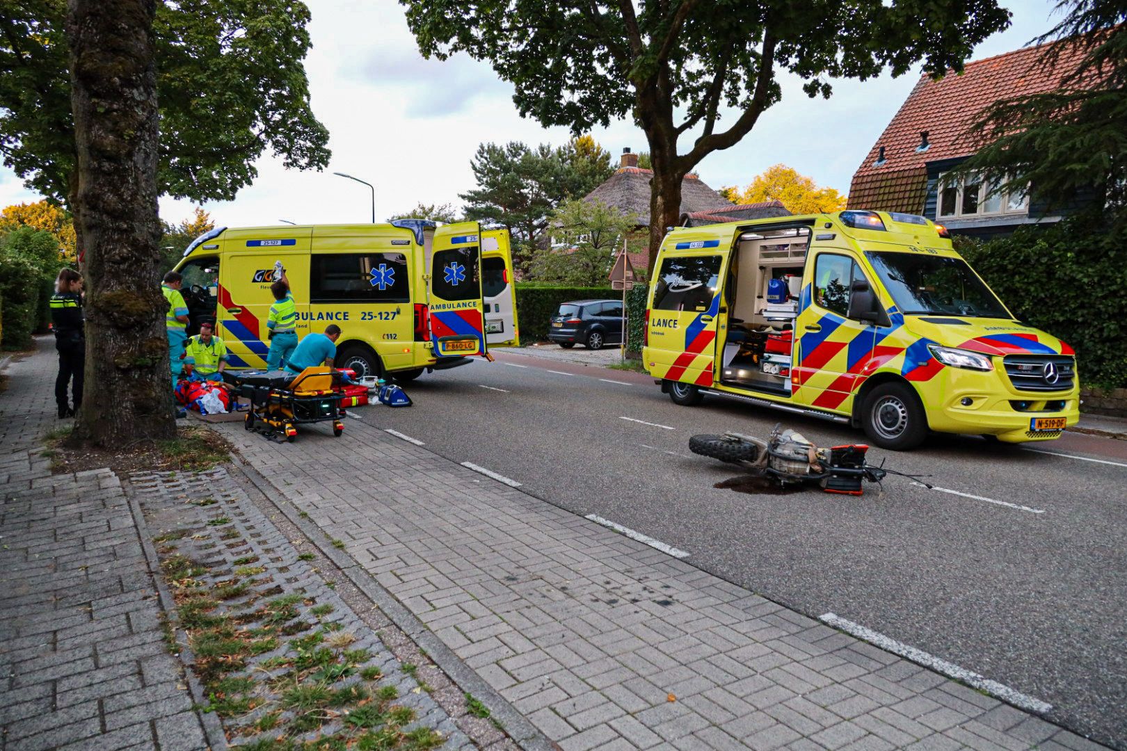De jongen schramde volgens een getuige een boom en kwam ten val. Door de snelheid brak de motor in tweeën. De ambulance vroeg assistentie van een extra ambulance, waarna de jongen met spoed naar het ziekenhuis is gebracht.