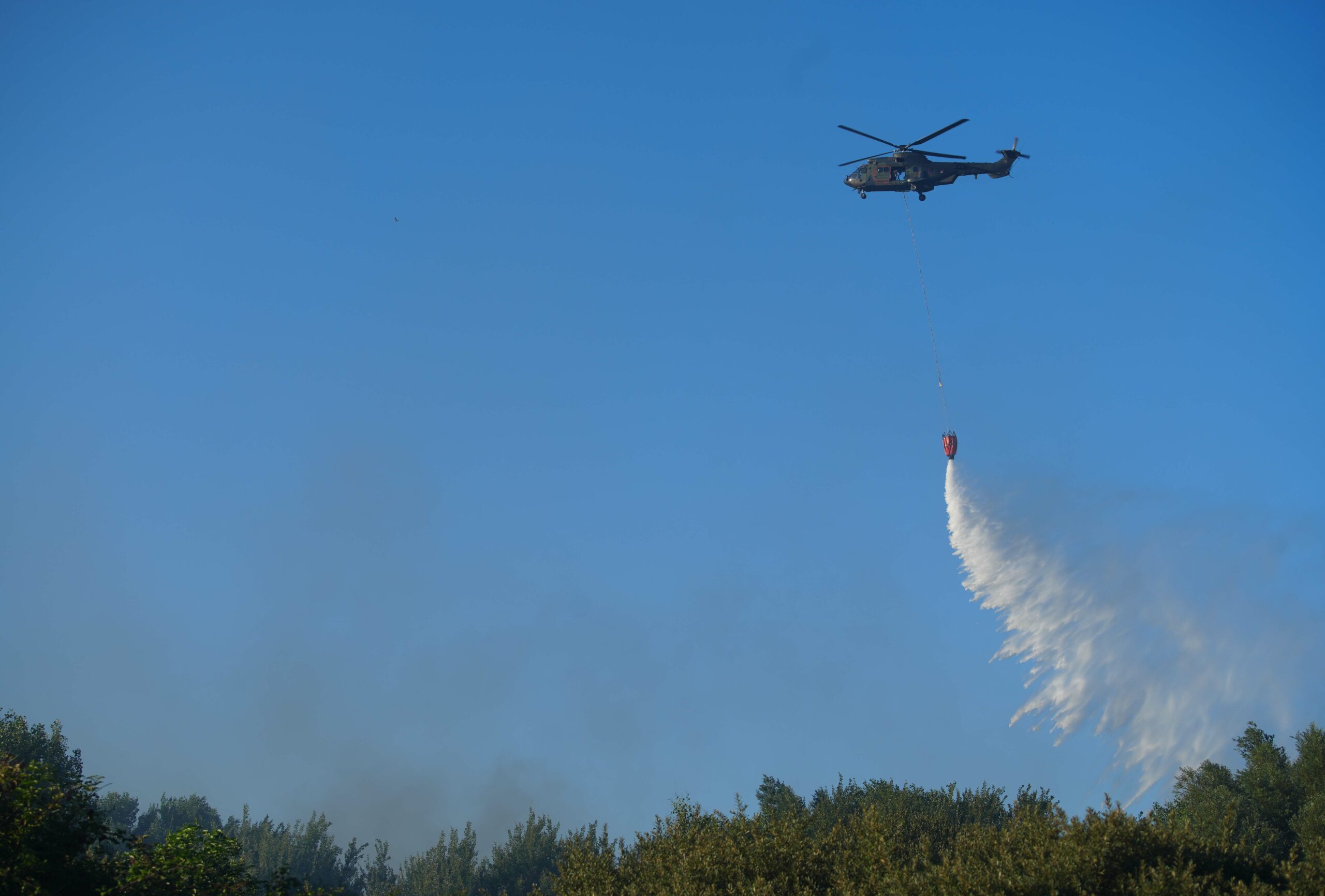 Een blushelikopter van Defensie was vanuit vliegbasis Gilze-Rijen uitgerukt om te helpen blussen. Het ging om een Cougar-transporthelikopter waaronder een zogenoemde bambi-bucket hangt waarmee steeds 2500 liter water over de brandhaard werd gestort. Volgens de luchtmacht is in totaal zo’n 62.500 liter water door de Cougar gestort. De veiligheidsregio noemde de inzet van deze helikopter succesvol. “Het heeft echt het verschil gemaakt.” De brandweer kreeg ook hulp van Zeeuwse collega’s en de zogeheten Handcrew Overijssel. Dit is een brandweerteam dat is gespecialiseerd in de bestrijding van natuurbranden.