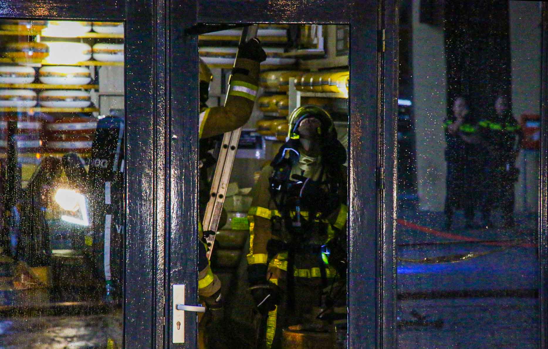 Rond 04.10 uur kwam de eerste melding over de brand binnen. De brandweer zette groot materieel in om uitbreiding van het vuur naar andere gebouwen te voorkomen. Omdat het oude panden zijn, was dat erg lastig. Rond 06.00 sloeg het vuur over naar een naastgelegen pand, waarin een kaashandel zit.
