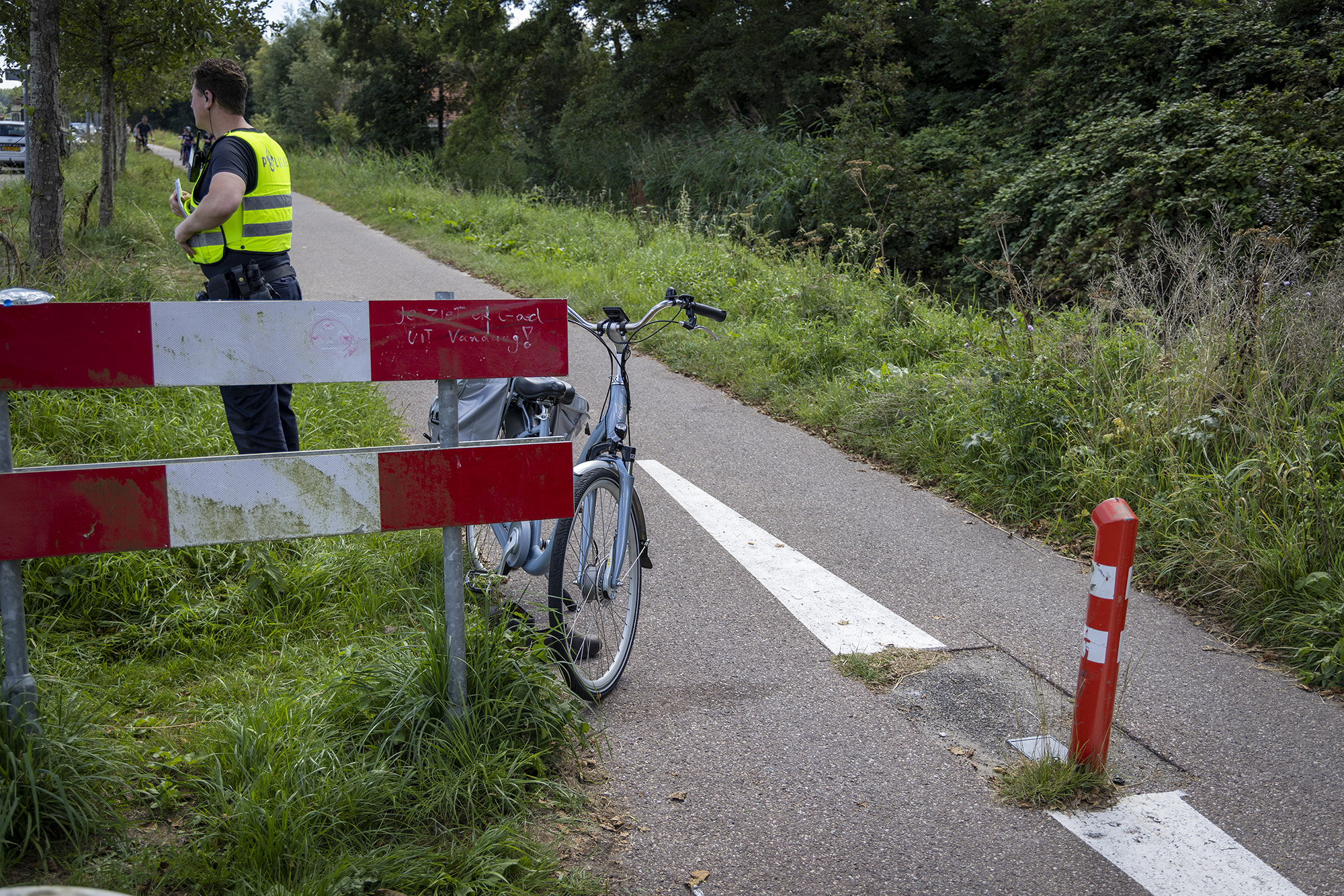 De fiets van het slachtoffer is door agenten met een busje meegenomen.