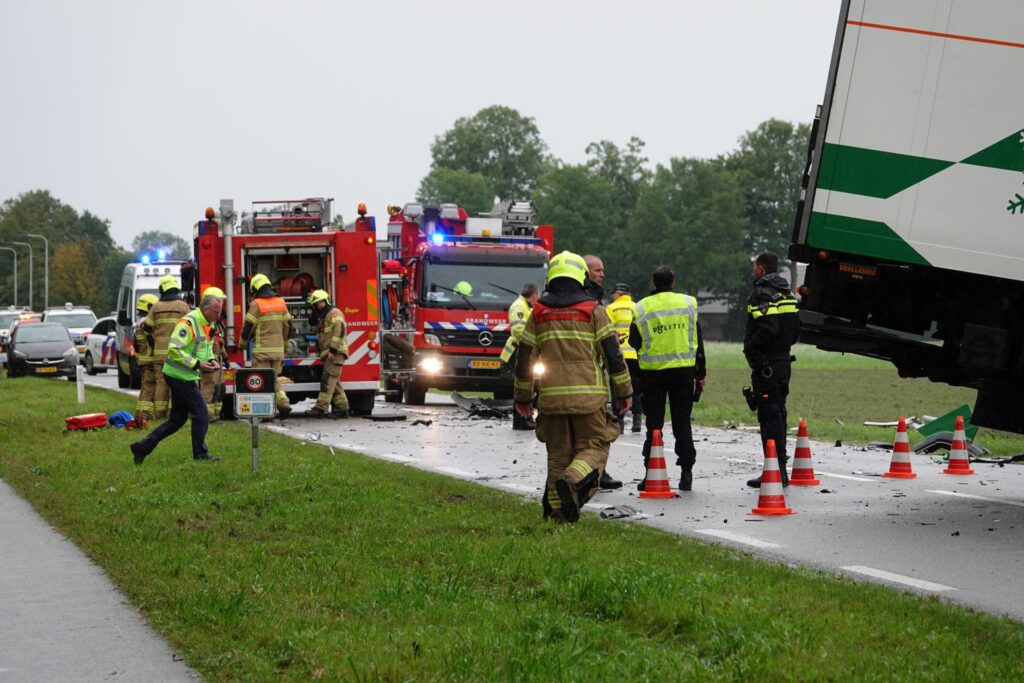 Het ongeval gebeurde rond 15.15 uur. Door nog onbekende oorzaak raakte de twee met elkaar in botsing. De schade aan de voertuigen en de ravage op het wegdek is enorm. De brandweer heeft de bestuurder van de auto moeten bevrijden omdat deze bekneld zat. Het slachtoffer is daarna samen met een trauma-arts overgebracht naar het ziekenhuis.