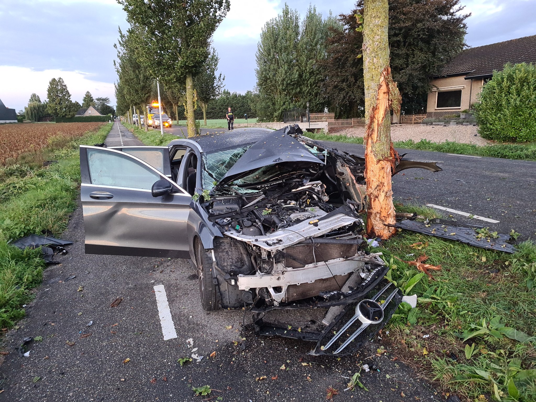 Politie zoekt bestuurder na heftige crash tegen boom - 112 Nederland