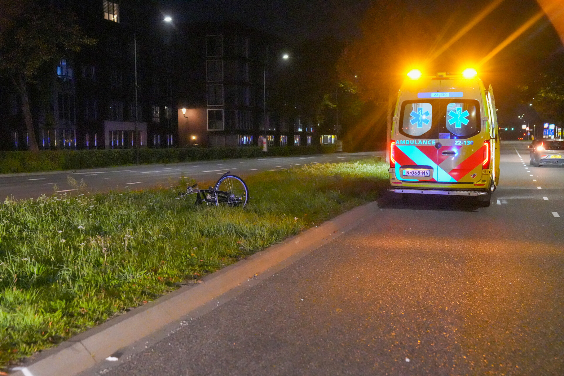 Bij de politie kwam een melding binnen dat er een fietser op straat lag en gewond zou zijn. Er werd geen auto aangetroffen die bij de aanrijding betrokken zou zijn geweest. De fietser is met onbekende verwondingen met een ambulance naar ziekenhuis gebracht.