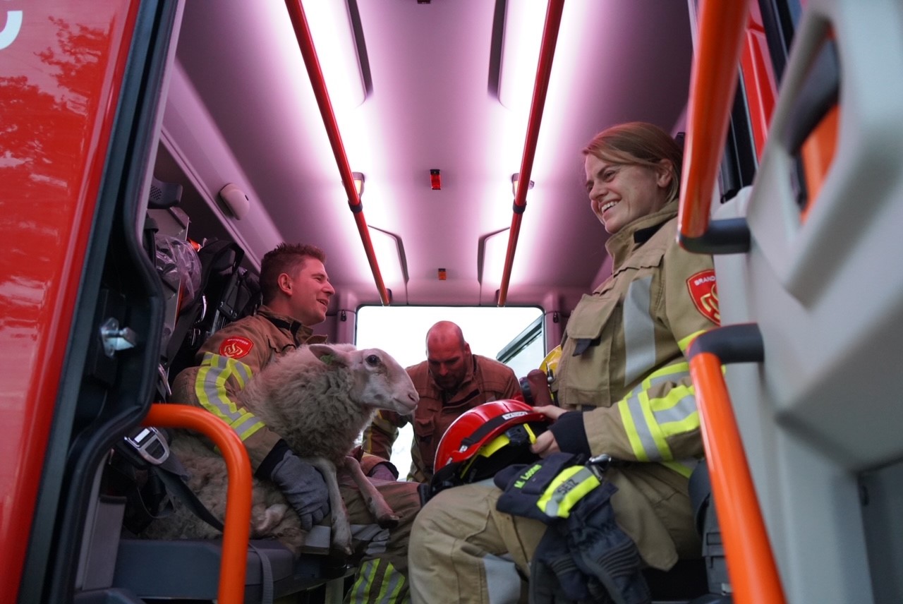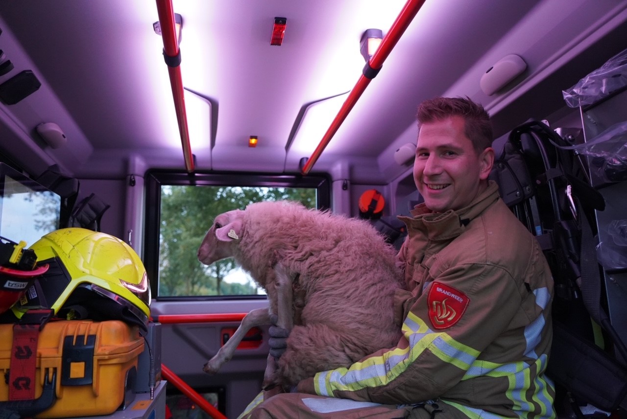 Brandweer redt schaap uit put en geeft het een lift terug