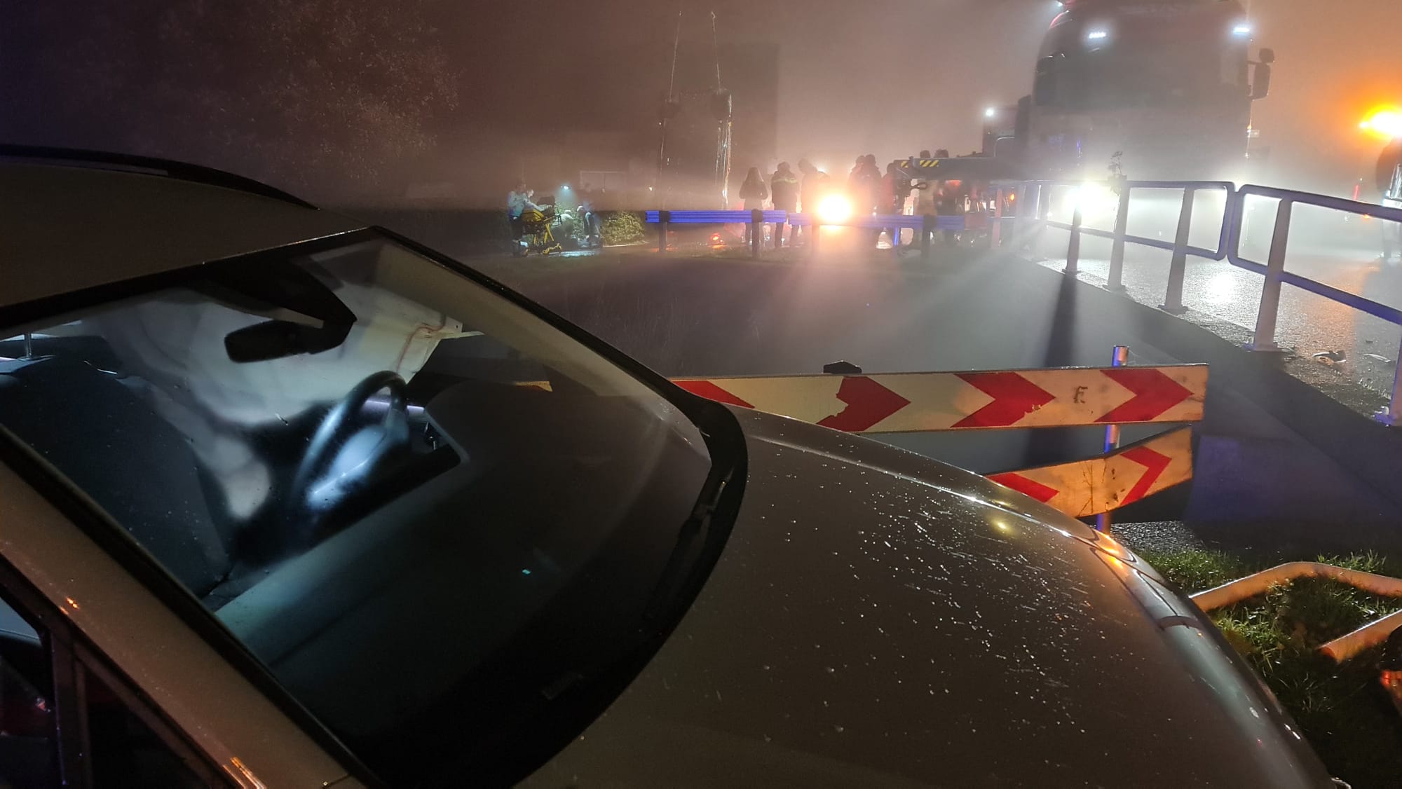 De voertuigen botsten rond 06.30 uur op elkaar op de Grote Sloot. De bestuurder van de ander auto is voor verhoor meegenomen naar het bureau, wat gebruikelijk is bij heftige ongelukken, aldus een politiewoordvoerder. Over de identiteit van slachtoffers is nog niks bekend.