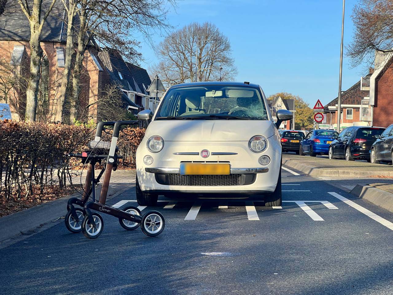 Een auto heeft een voetganger aangereden. Dit gebeurde ter hoogte van de kerk. Mogelijk door de laagstaande zon heeft de bestuurder, de voetganger niet gezien. Het slachtoffer, een oudere dame is met een flinke hoofdwond meegenomen in de ambulance en werd met spoed overgebracht naar het ziekenhuis in Utrecht. Onderweg is er alsnog een traumahelikopter opgeroepen. Ter hoogte van Nijkerk is de trauma arts bij de ambulance ingestapt voor medische assistentie