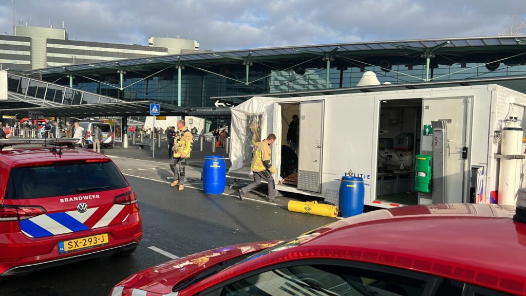 UPDATE: Grote inzet hulpdiensten op Schiphol na mogelijke vondst gevaarlijke stoffen bij man