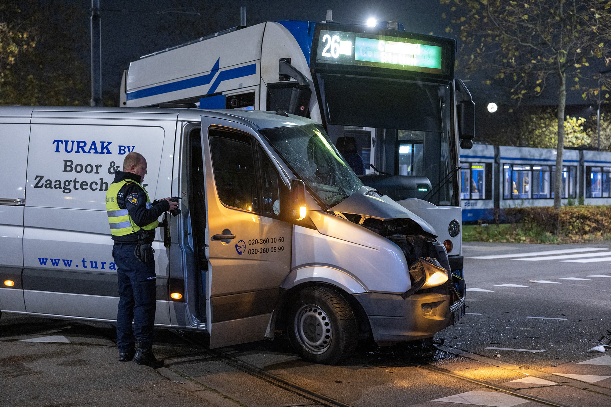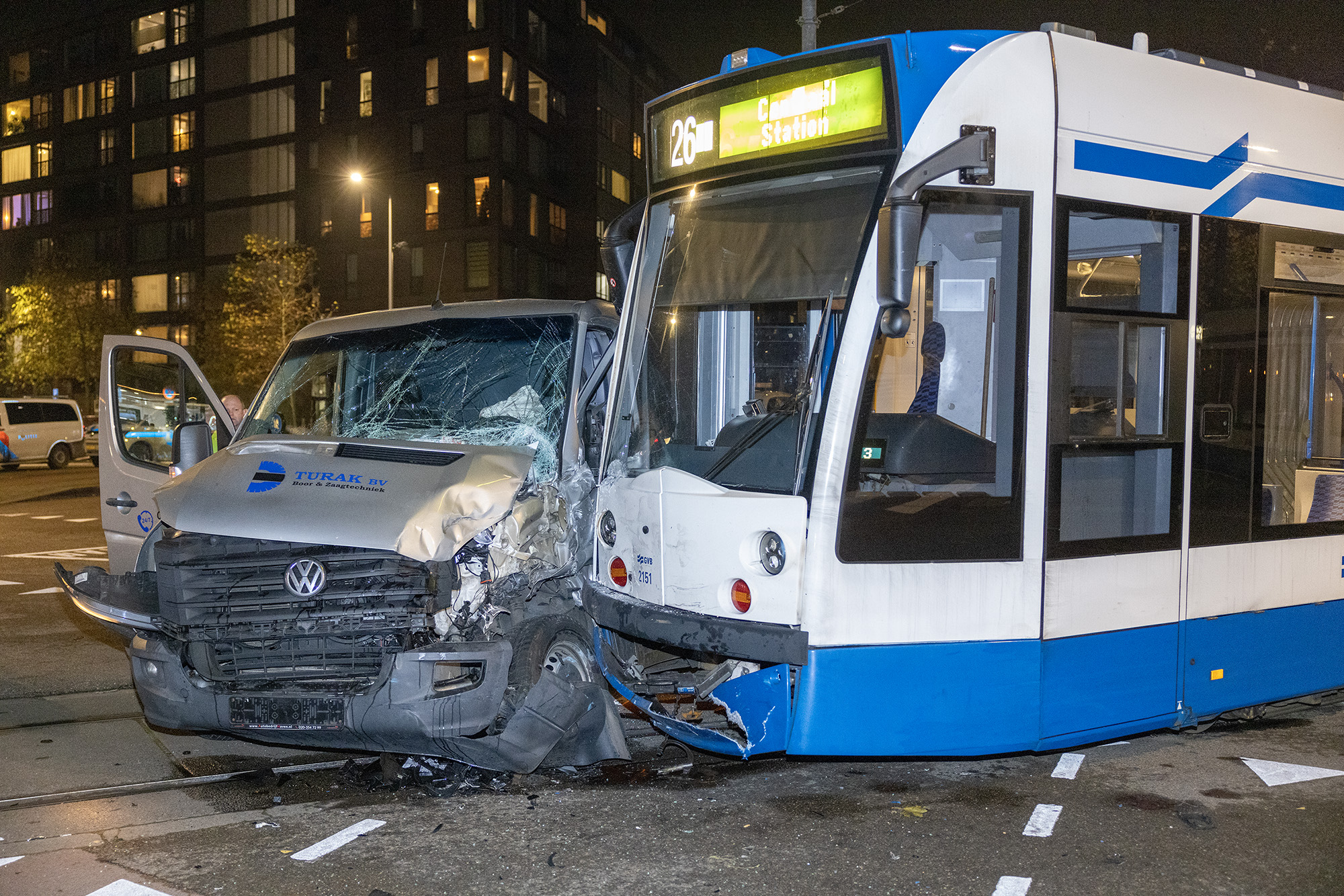 AMSTERDAM – Een tram en een busje zijn woensdagavond hard met elkaar in botsing gekomen in Amsterdam. Het ongeval gebeurde even na 18:00 uur op de hoek van de Eva Besnyostraat met de Pampuslaan op de IJburg in Amsterdam.