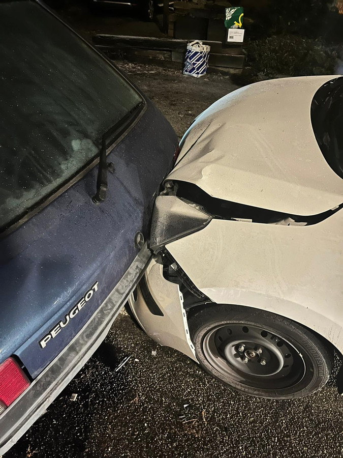 Toen de politie werd ingeschakeld en de lesauto vond, bleek de instructeur achter het stuur te zitten. Tijdens de achtervolging ramde hij een andere auto en reed door na een aanrijding. Door gladheid raakte de lesauto uiteindelijk in de slip en kwam met volle vaart tegen vier geparkeerde auto’s tot stilstand. De leerling die meerijde raakte gewond aan haar benen en moest in de ambulance behandeld worden.
