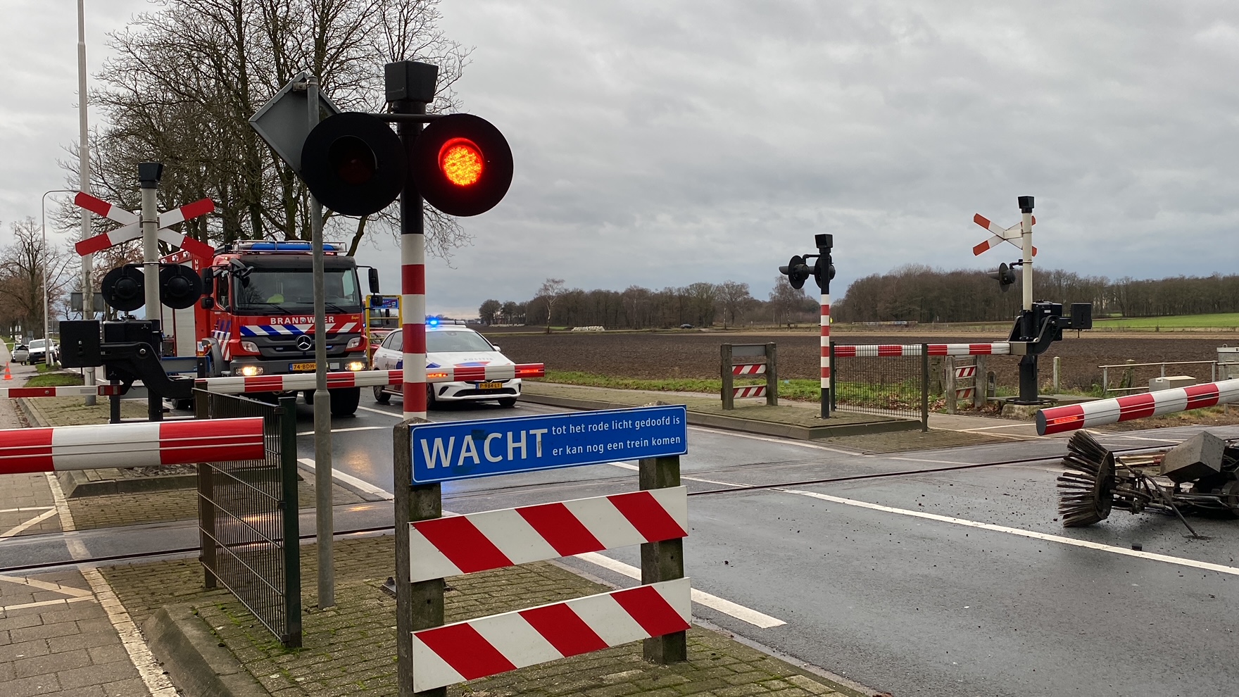 De spoorwegovergang aan de Spoorstraat is woensdagavond nog enkele uren afgesloten in verband met het onderzoek door onder meer de politie.