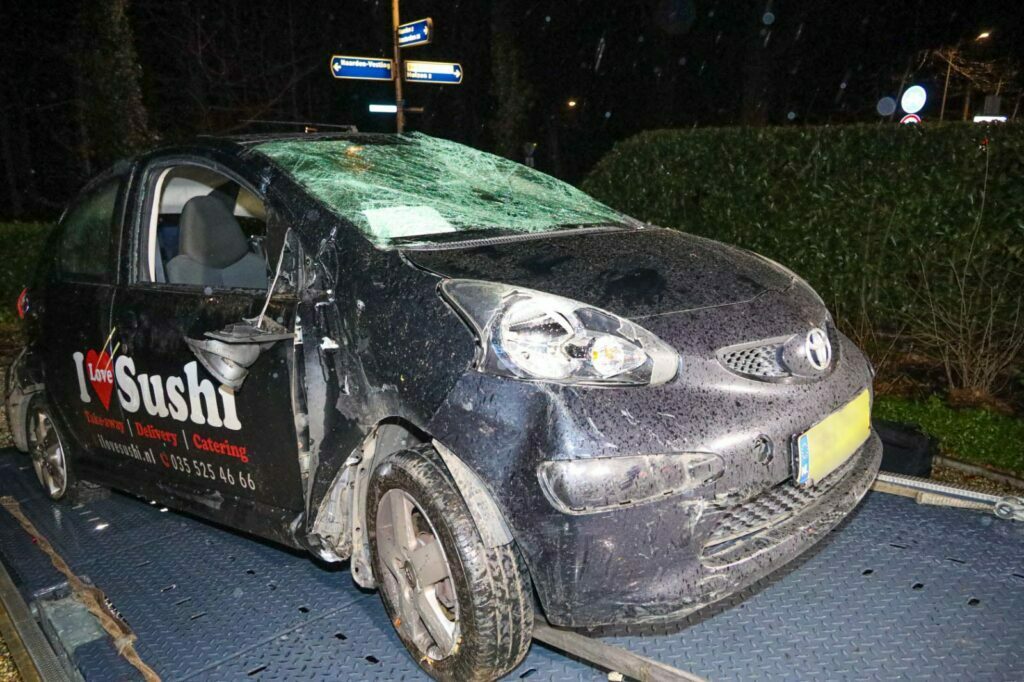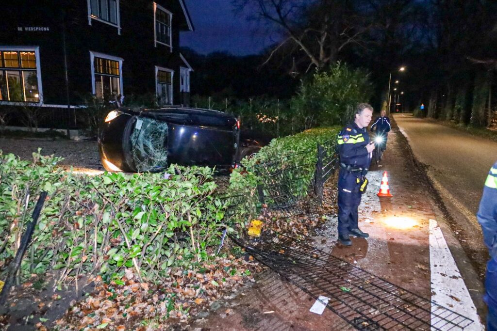 Rond 17.15 uur raakte de bestuurder van de auto, door nog onbekende reden, de macht over het stuur kwijt. Het voertuig klapte met hoge snelheid door een hekwerk, raakte een vlaggenmast sloeg over de kop en kwam op zijn kant tot stilstand tegen een geparkeerde auto.