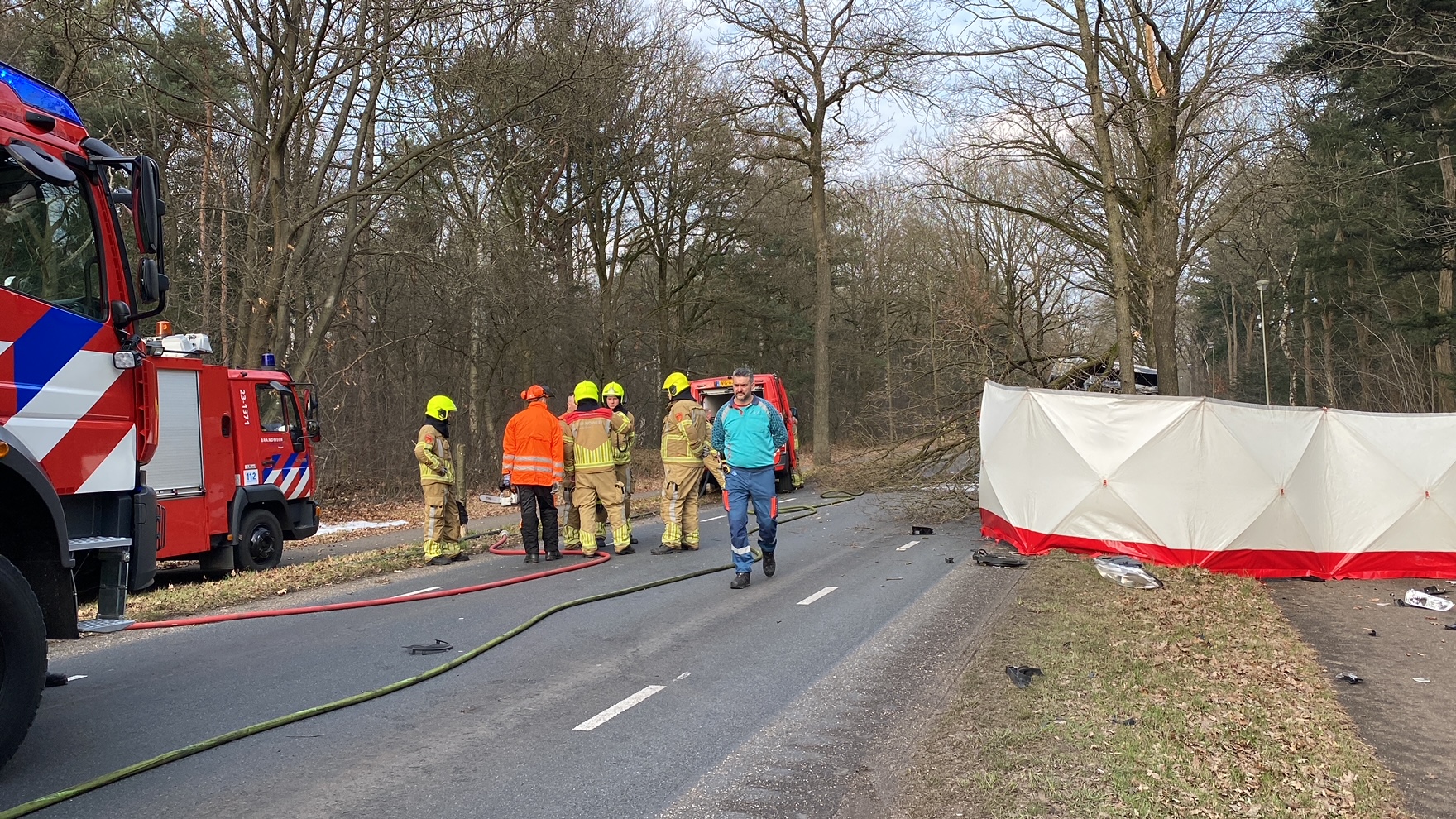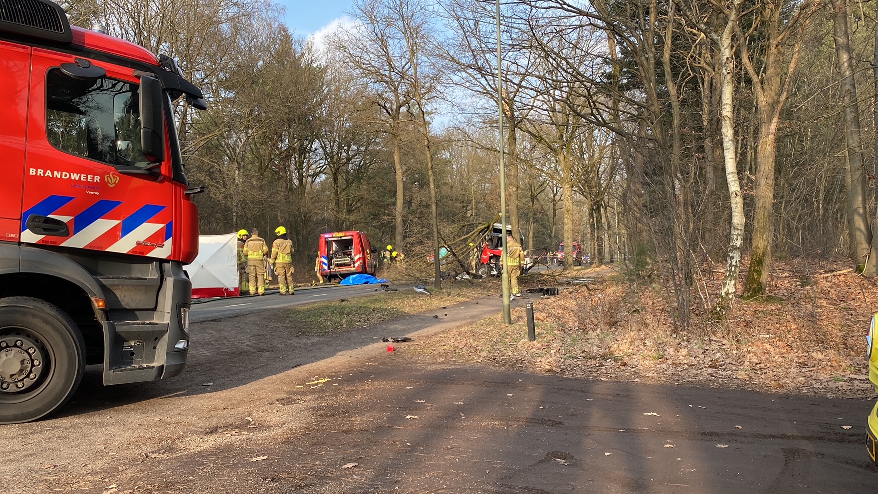 Dode bij ongeluk: personenbusje vliegt in brand na botsing tegen boom