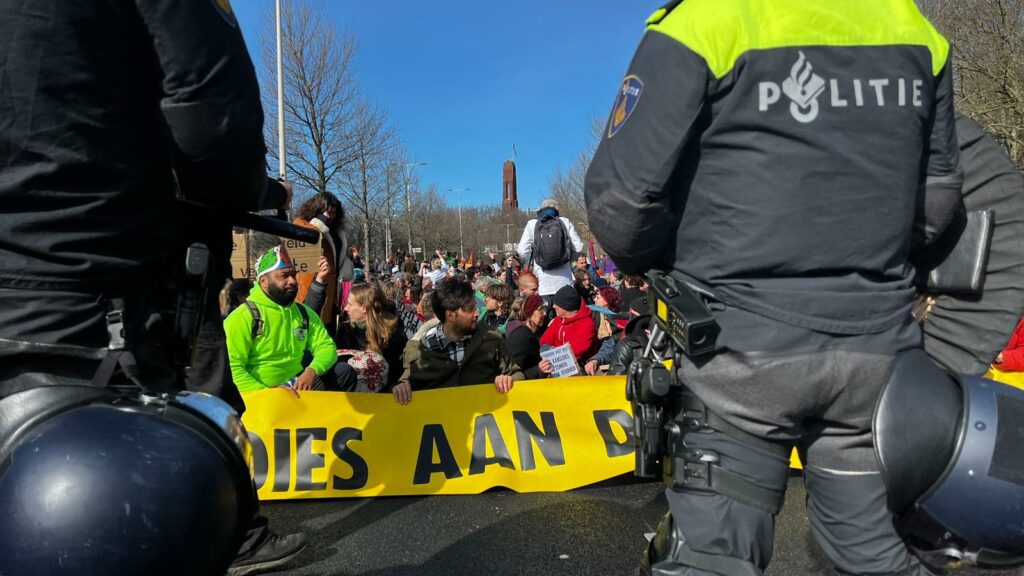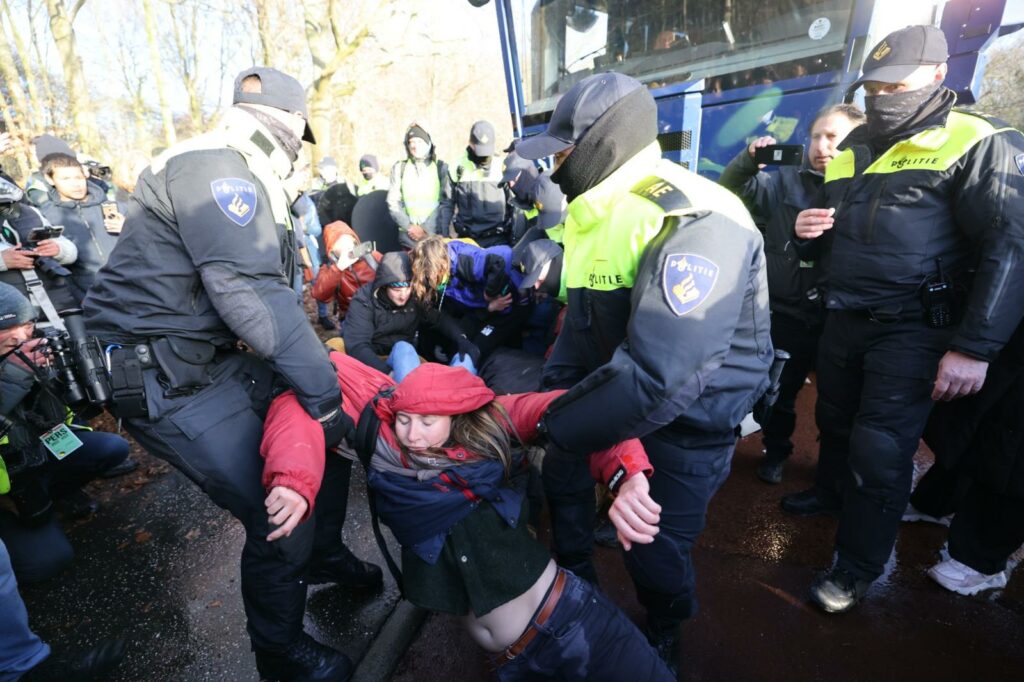 De gemeente had gemeld dat de demonstratie om 17.00 uur afgelopen moest zijn. “Daarna zal de politie maatregelen treffen om de omgeving vrij te maken.” Sommige actievoerders hebben zich aan elkaar vastgeketend. Het zal de politie werk opleveren om ze van elkaar los te maken. “Doel is om de weg voor het donker weer vrij te hebben”, meldde de gemeente eerder zaterdag op Twitter.