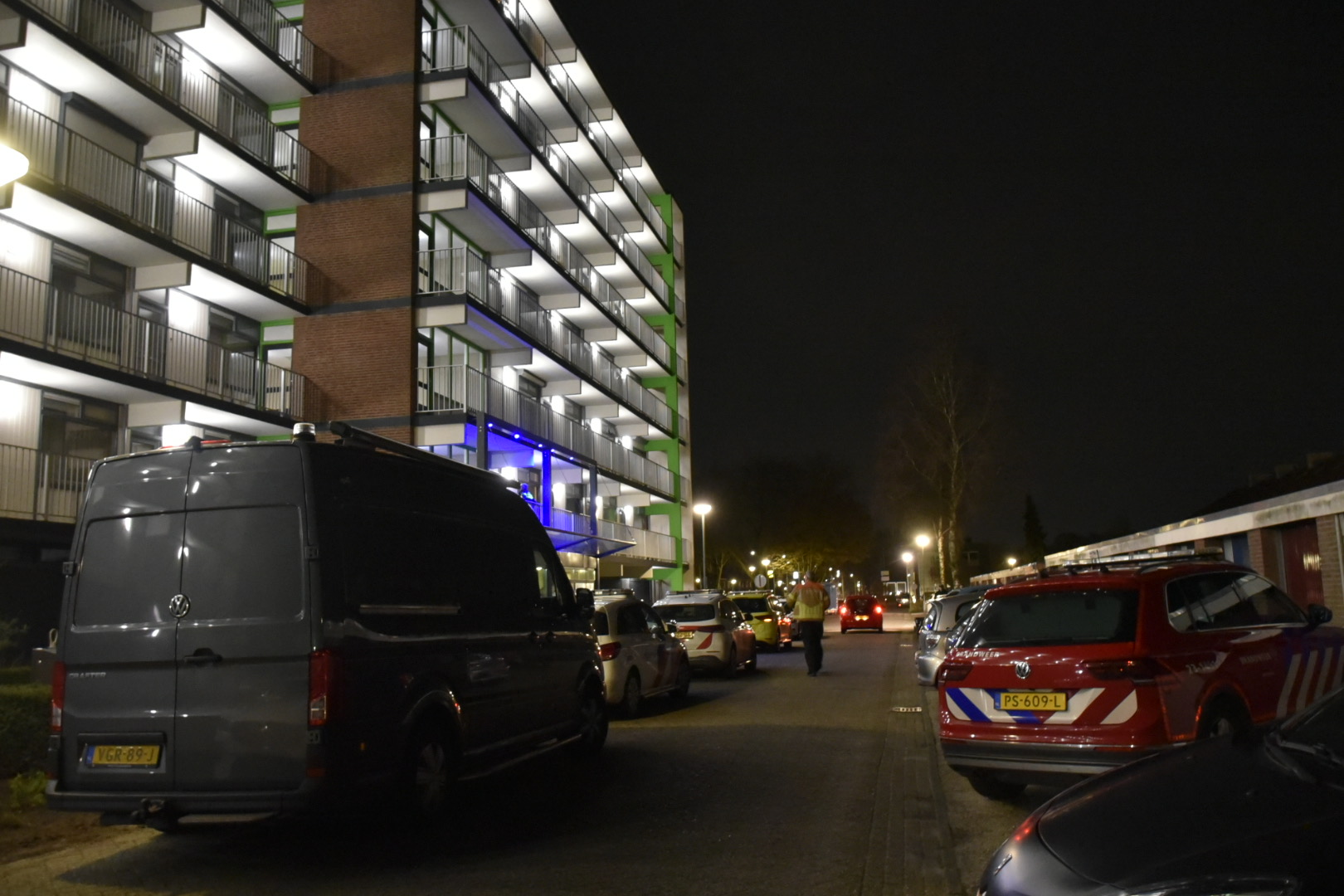VENRAY – Op woensdagavond is er een overleden persoon aangetroffen in een woning aan de Hubenhof in Venray (Limburg). De politie en brandweer zijn ter plaatse en mannen in witte pakken zijn aanwezig om onderzoek te doen in de woning.