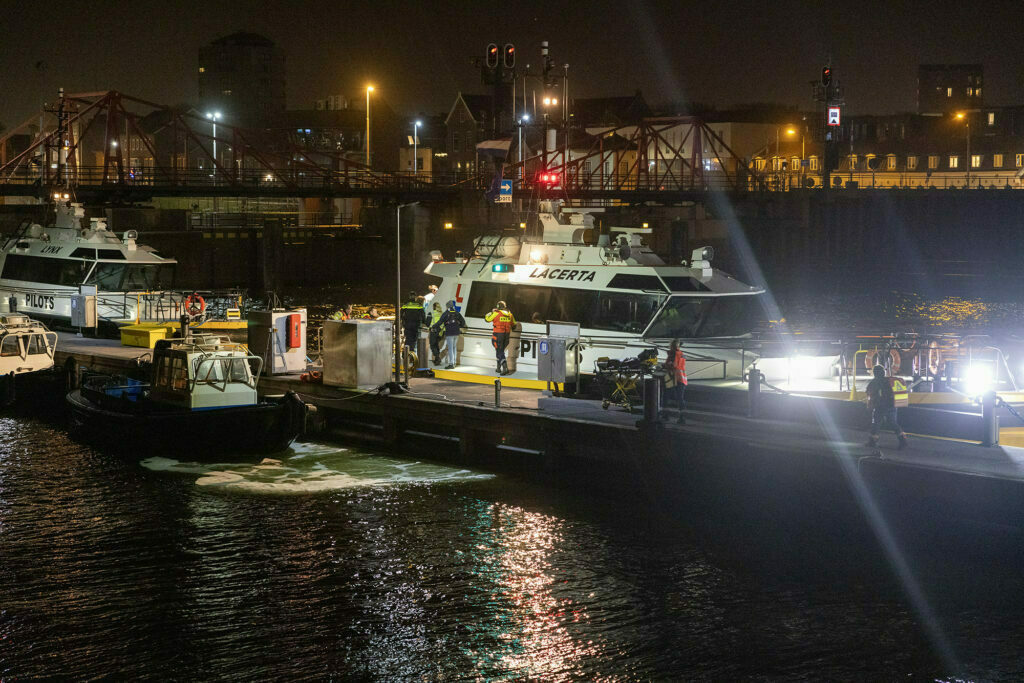 De loodsboot was het grote zeeschip aan het loodsen. Beide kapiteins worden gehoord, evenals andere getuigen. Ook worden radarbeelden opgevraagd en vindt technisch onderzoek plaats aan beide schepen. De politie kijkt of er sprake is van verwijtbare schuld, zegt de woordvoerder.
