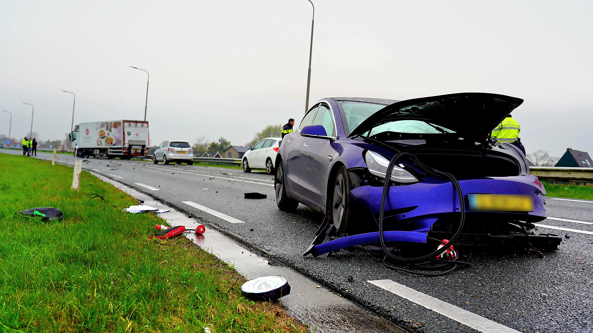 ‘Kwark etende’ Tesla-bestuurder crasht tegen vrachtwagen