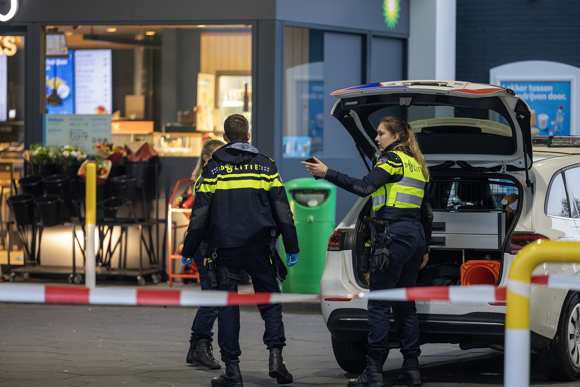 Het tankstation is met lint afgezet. Het is nog onduidelijk of de slachtoffers hun verwondingen bij het tankstation zelf hebben opgelopen of dat ze gewond naar het tankstation zijn gereden.