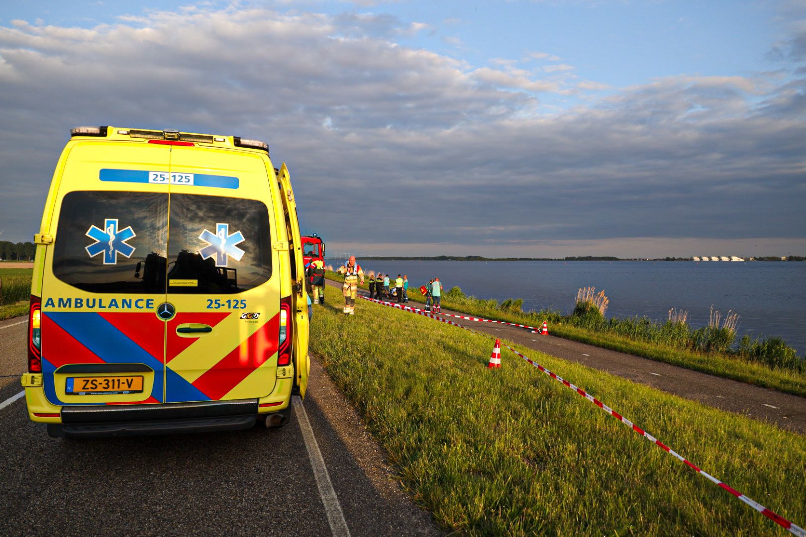 De hulpdiensten werden zaterdag rond 19.45 uur gewaarschuwd door een voorbijganger die het voertuig in het water had gezien. De Gooimeerdijk-Oost tussen Almere Haven en de snelweg A27 werd afgesloten voor verkeer vanwege het incident.