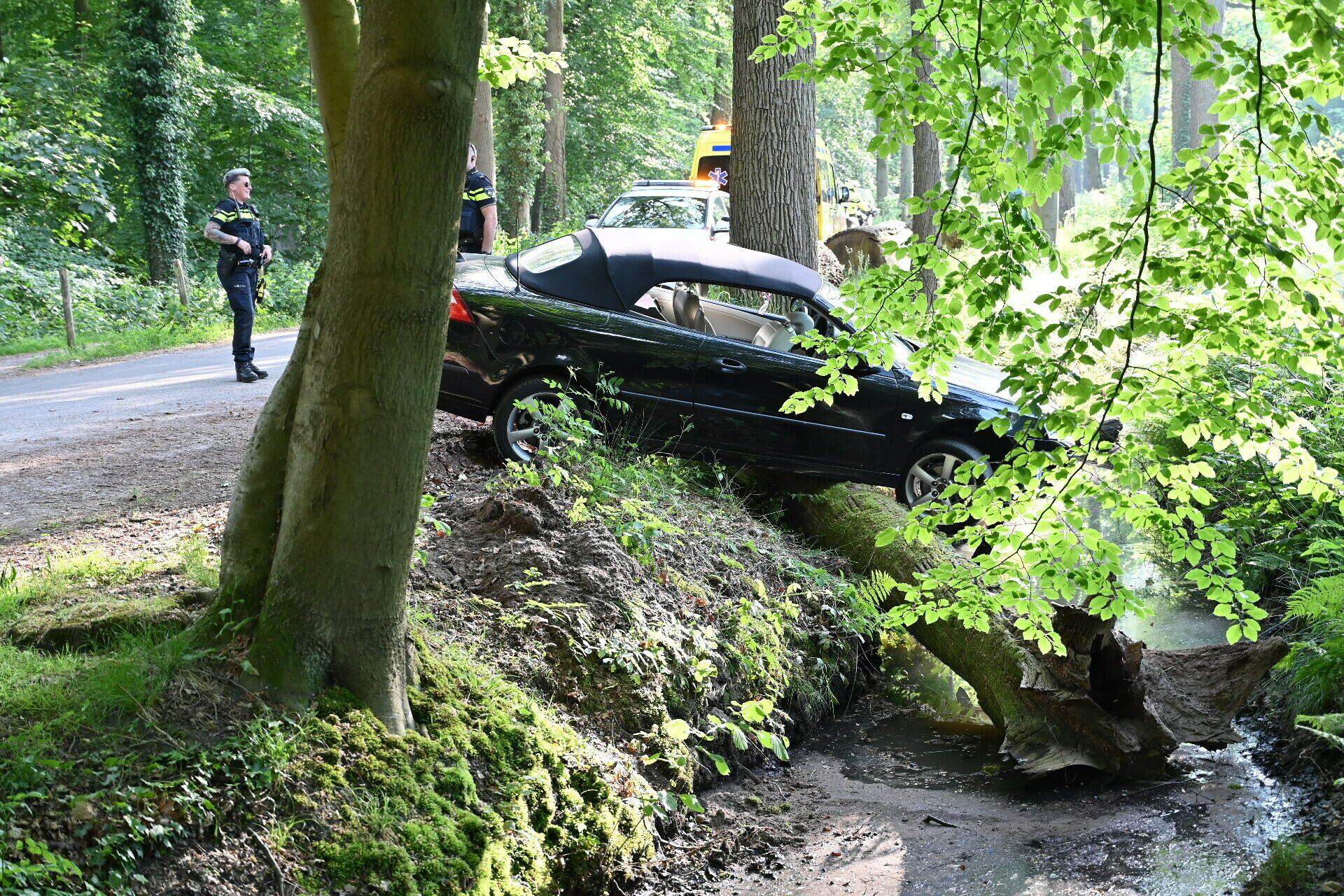 BREDA – Op dinsdag aan het begin van de avond is een bestuurder met haar auto rechtdoor gereden op een kruising aan de Jachthuisdreef in Breda. Hierbij kwam zij in botsing met een boom en kwam ze op een boomstam terecht, die over een sloot hing.