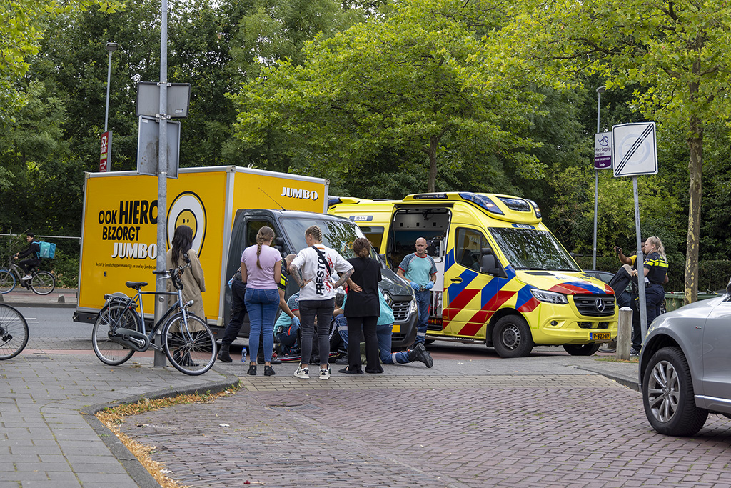 De man fietste over het fietspad langs de Schoterweg toen hij even 18:00 uur in botsing kwam met een boodschappen bestelwagen die vanaf de Schoterweg de Dr. Leijdsstraat in rijde rijden. De fietser raakte de voorkant van de wagen en kwam ten val. Omstanders schoten direct te hulp in afwachting van het ambulancepersoneel. De man is opgevangen en na de eerste zorg naar het ziekenhuis vervoerd voor verdere behandeling. De man heeft vermoedelijk zijn sleutelbeen bij de val gebroken.