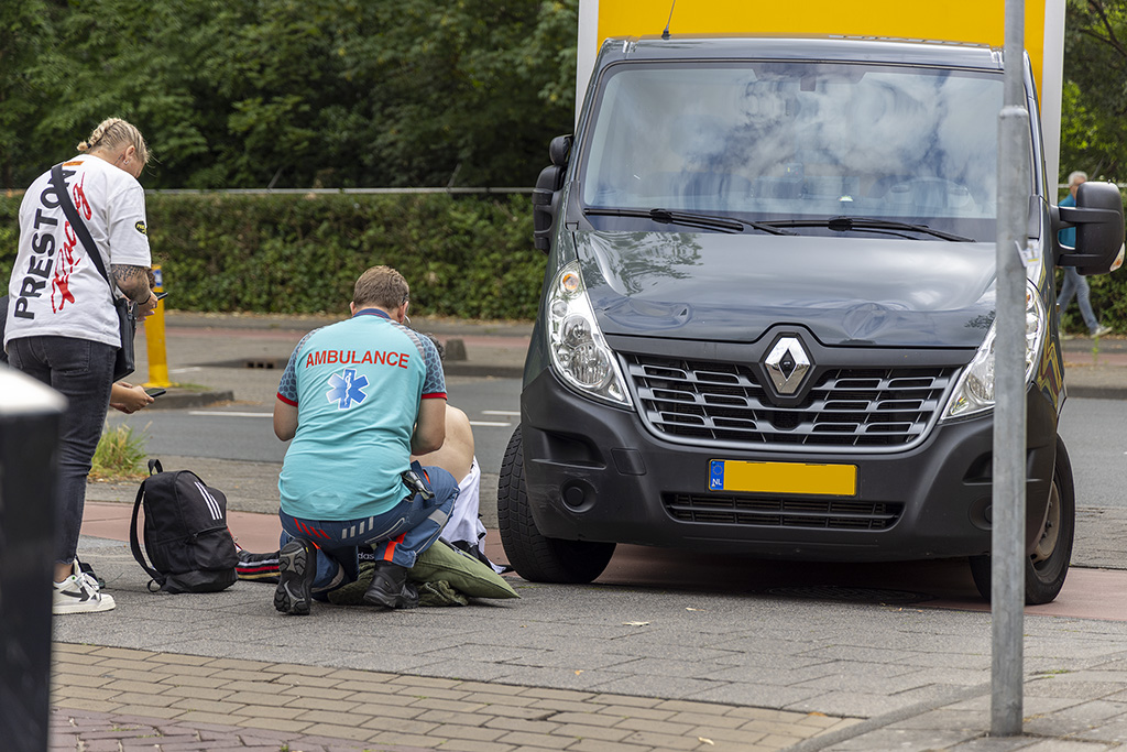 Fietser geschept door afslaande bestelwagen