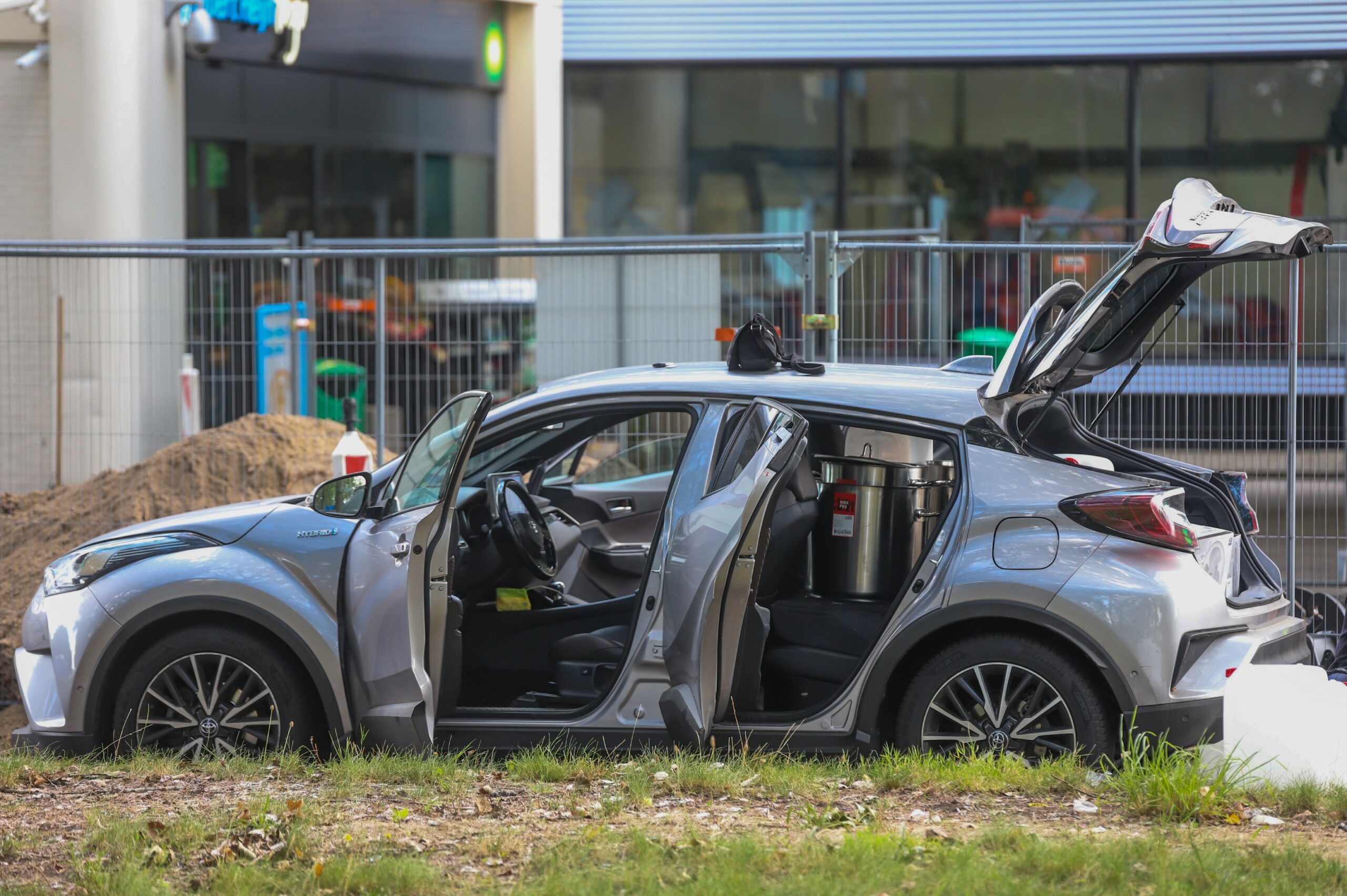 Auto vol met jerrycans staande gehouden, tankstation afgesloten