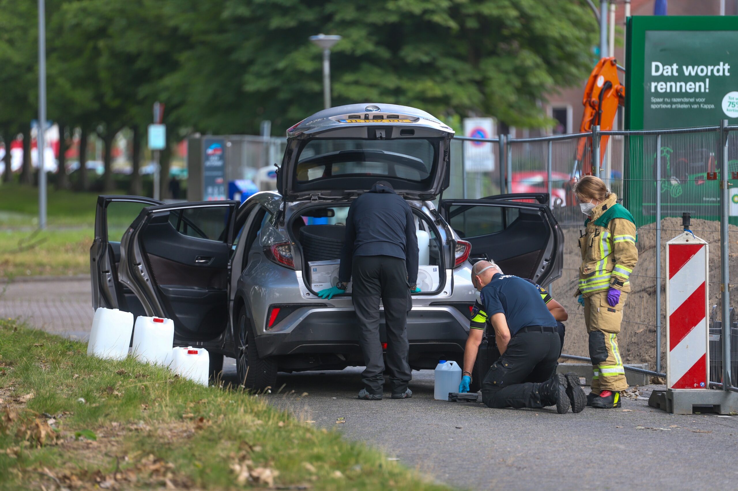 De politie vroeg assistentie van de brandweer vanwege het aantreffen van jerrycans die mogelijk gevuld waren. De hulpdiensten hebben de omgeving ruim afgezet in verband met de onbekendheid van de stof. De hulpdiensten doen onderzoek naar de stof die in de jerrycans zit.