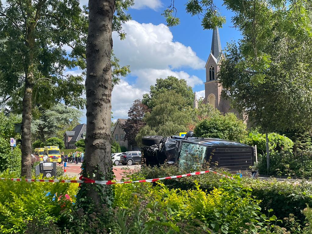 Fietser overlijdt na ernstige aanrijding met gekantelde bestelwagen