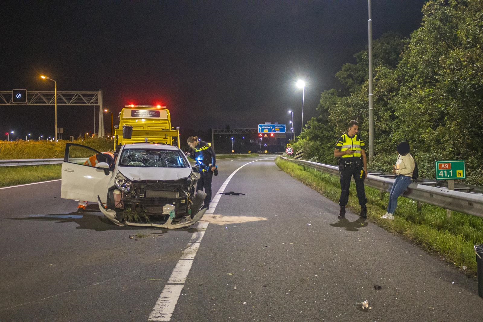 ZWANENBURG – In de nacht van dinsdag op woensdag rond kwart voor één is op de A9, ter hoogte van Zwanenburg, een auto tegen de vangrail gereden.