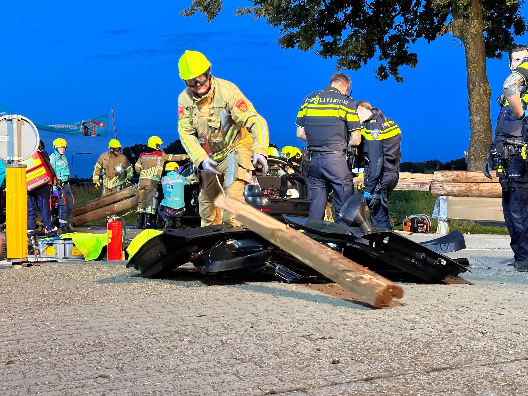 KONINGSBOSCH – In de vroege ochtend heeft zich een ernstig eenzijdig ongeval voorgedaan op de N572 (Kerkstraat) in Koningsbosch. Een auto is tegen een vangrail gereden, waarbij één persoon bekneld raakte in het voertuig.