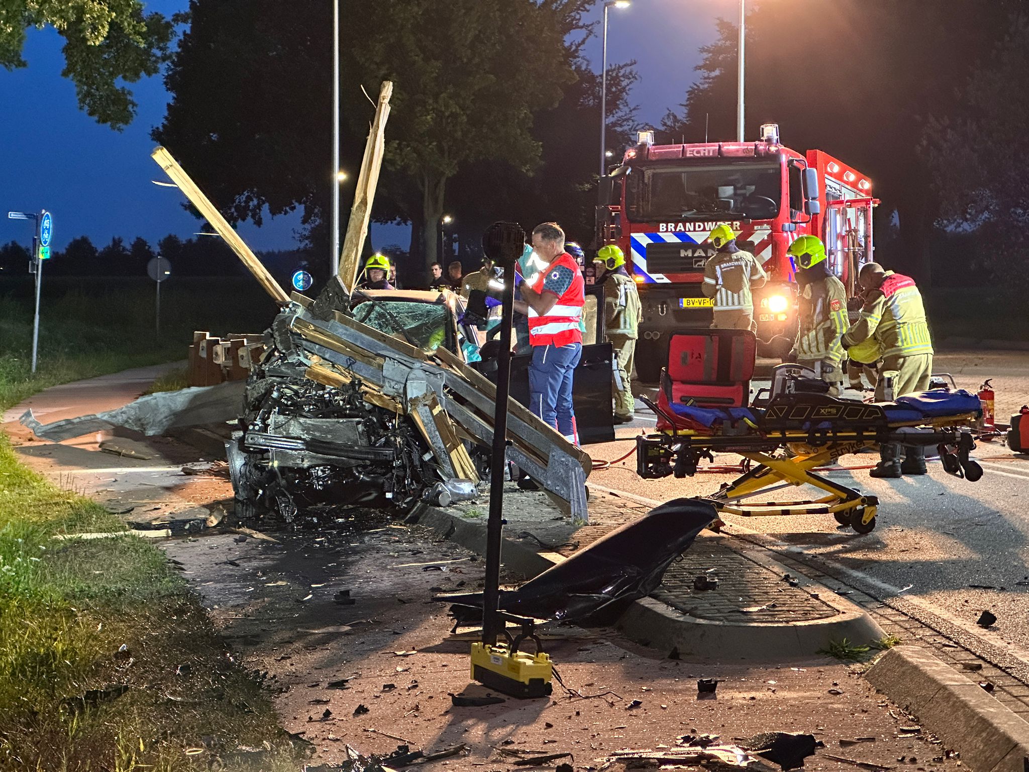 Het ongeval vond plaats om 5:56 uur, waarbij de auto op nog onbekende wijze van de weg is geraakt en tegen een vangrail is gebotst. Hulpdiensten waren snel ter plaatse en troffen de situatie aan waarbij de bestuurder van het voertuig bekneld zat. Vanwege de ernst van de situatie werd onmiddellijk een traumahelikopter opgeroepen om medische assistentie te verlenen.