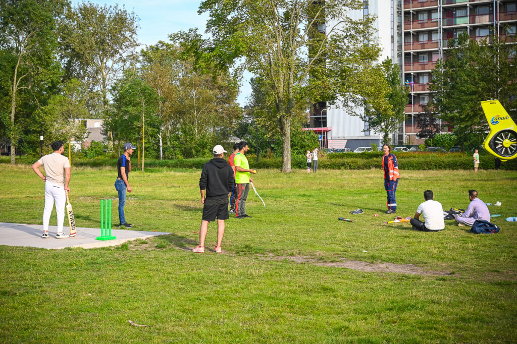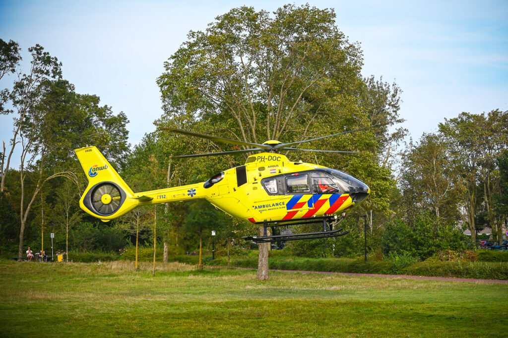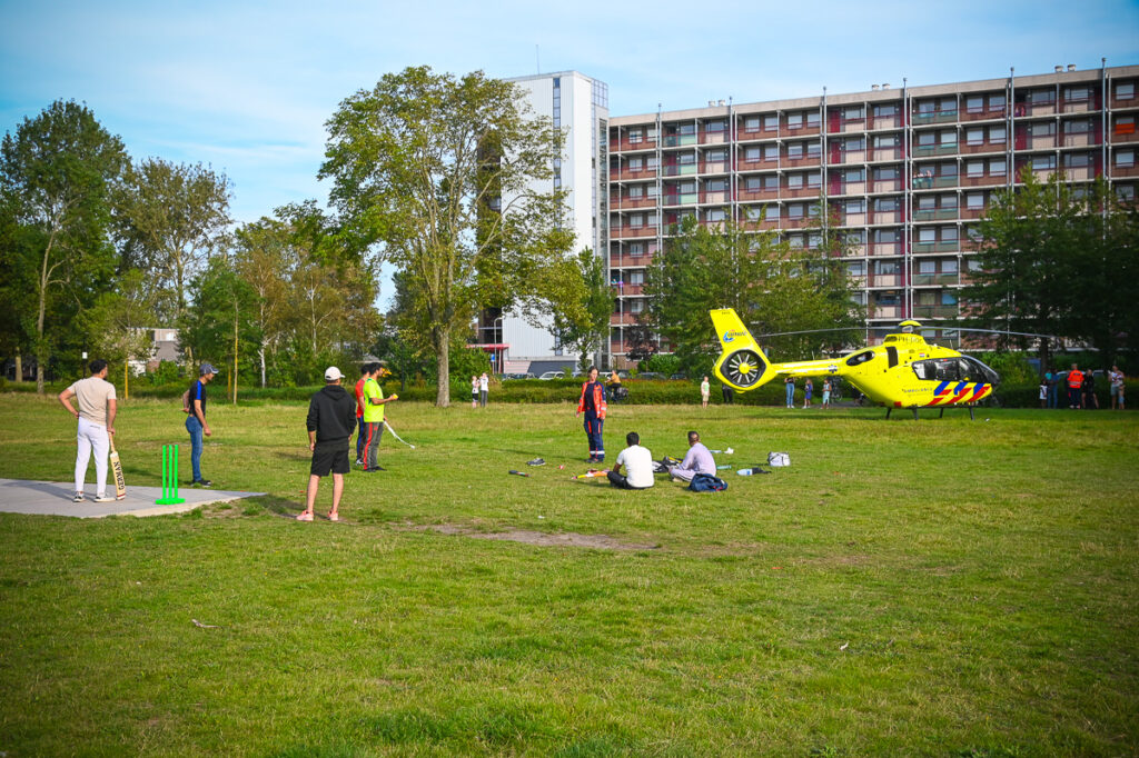 De traumahelikopter was geland op het veld aan het Willem Alexanderplantsoen. Een groepje mensen die daar cricket aan het spelen was, werd gevraagd om even te pauzeren zodat de heli veilig kon opstijgen.