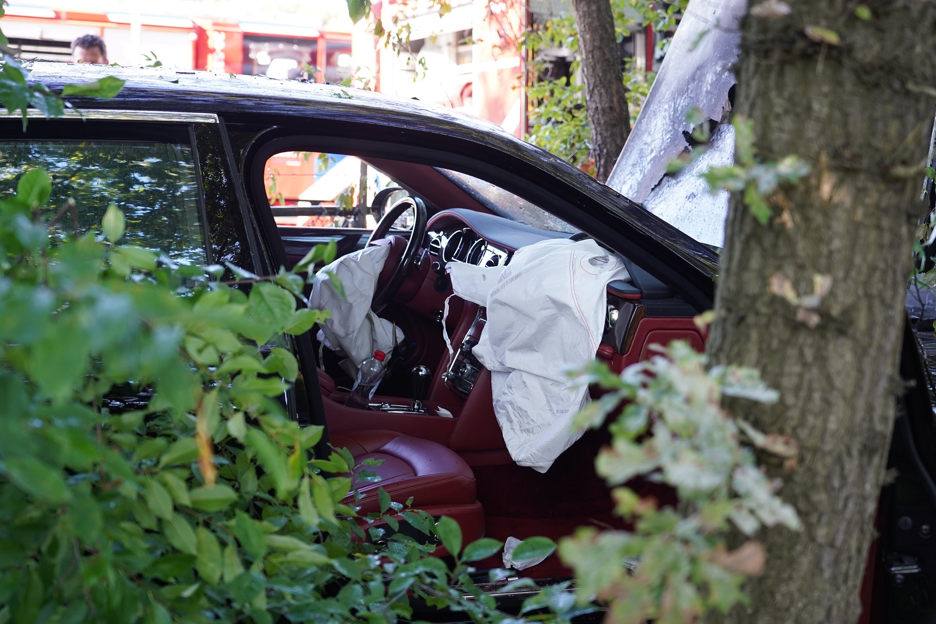 Bentley Mulsanne van €520.000 botst tegen boom en vliegt in brand