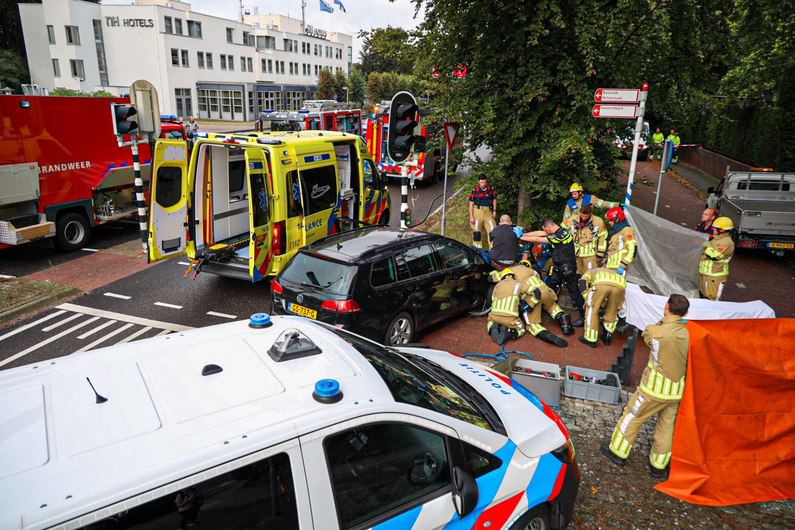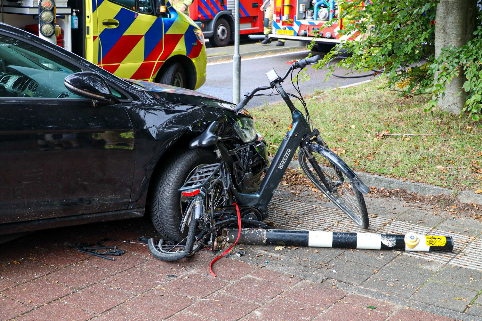 De fietser zat klem tussen de auto en een paal en moest door de brandweer worden bevrijd uit deze benarde situatie. Daarna is hij per ambulance overgebracht naar het ziekenhuis.