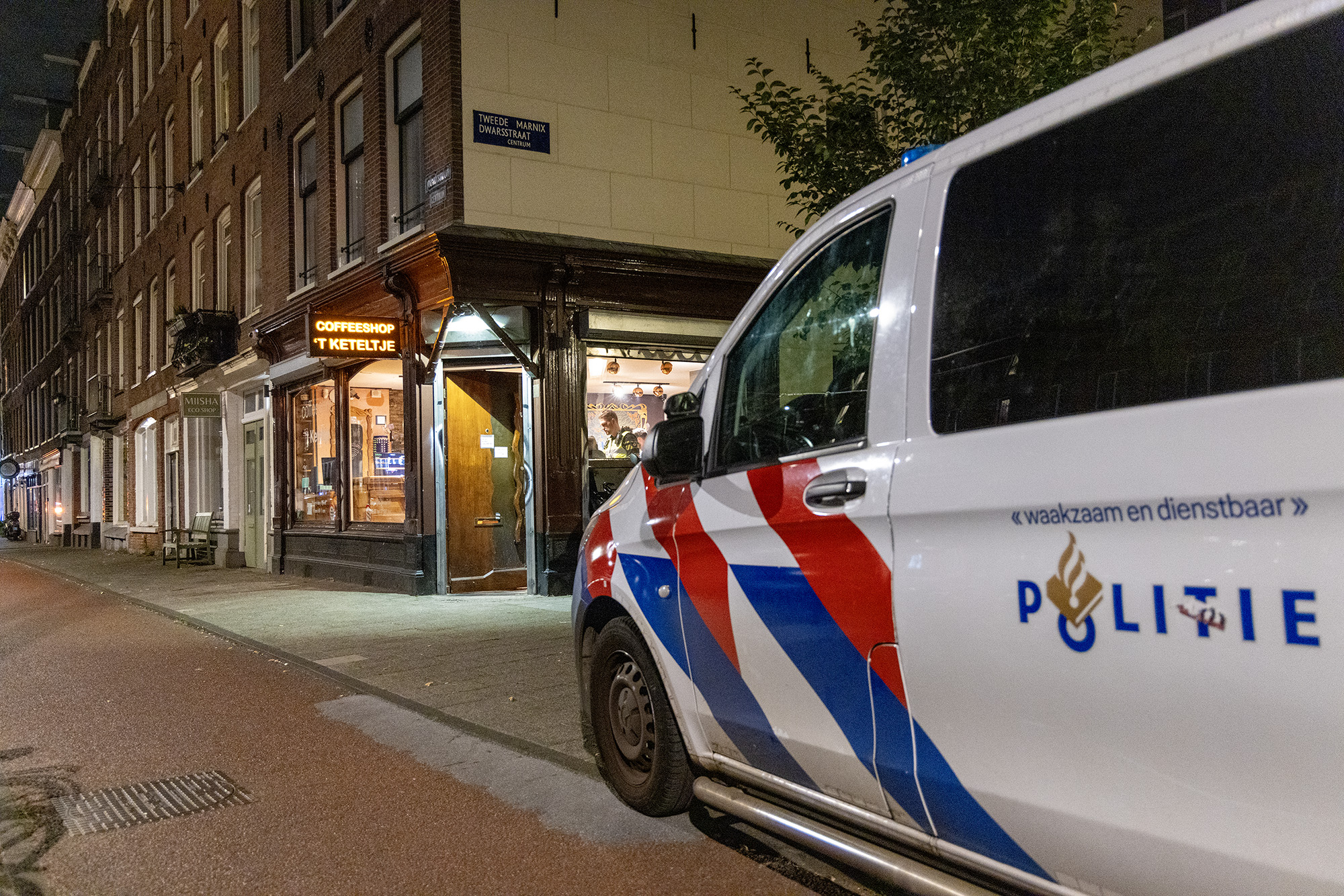 En ruim uur later werd coffeeshop ‘T Keteltje aan de Marnixstraat het doelwit van een overval. Voor zover bekend zijn er nog geen aanhoudingen verricht.