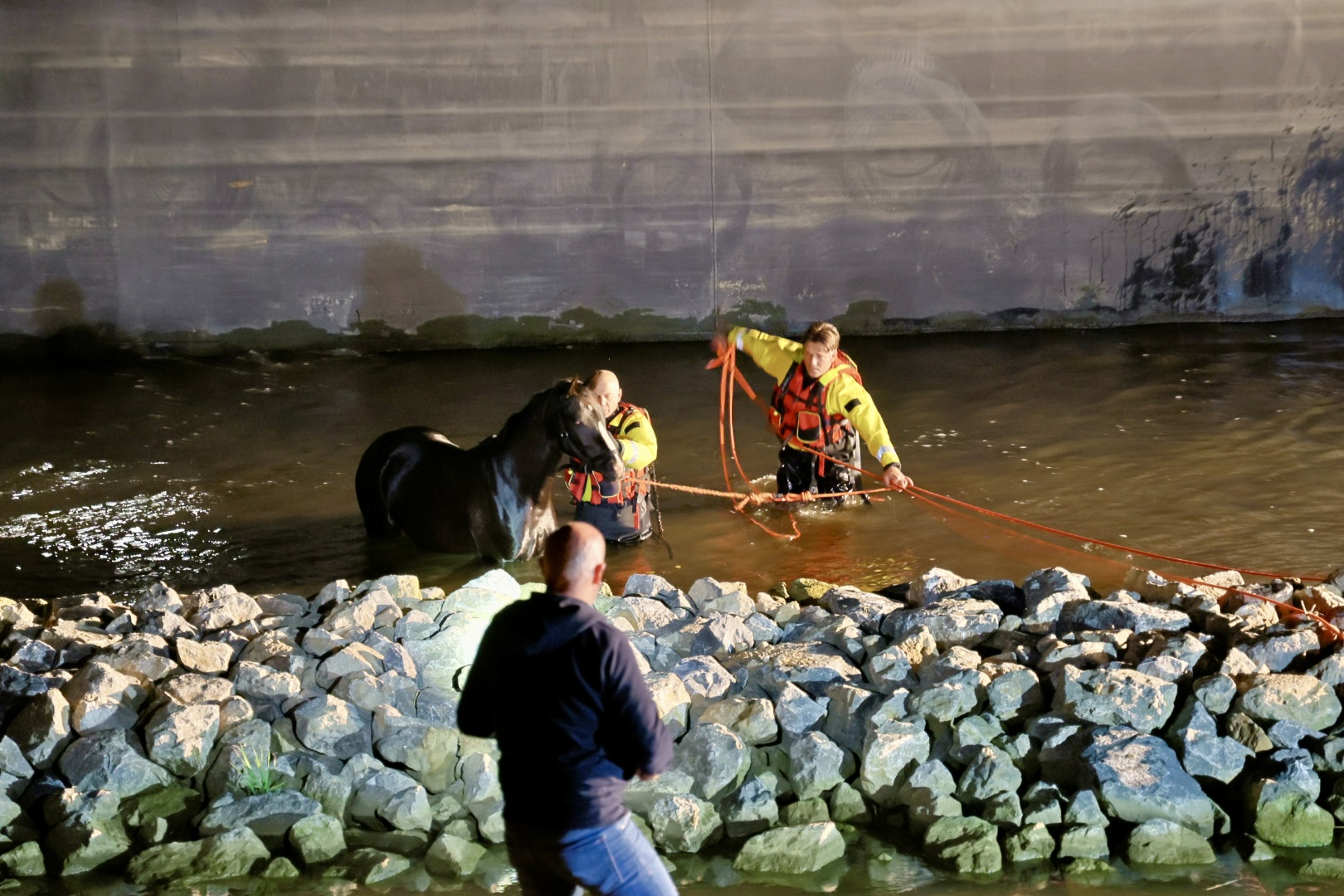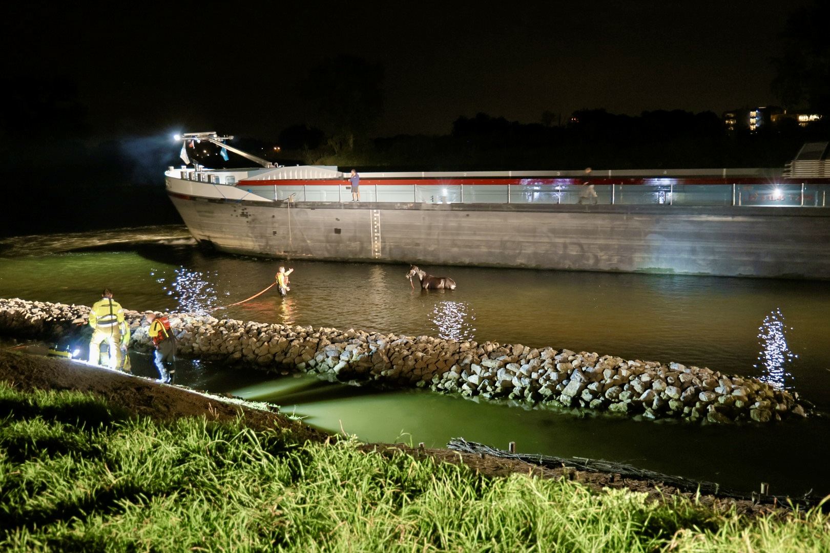 Een stuk verder werd het dier gespot, de schipper zette het paard klem waardoor het dier redelijk aan de kant bleef en waarop de brandweer het dier kon aanlijnen en met vereende krachten het paard op de kant krijgen. Waarna het paard terug naar de manege gebracht.