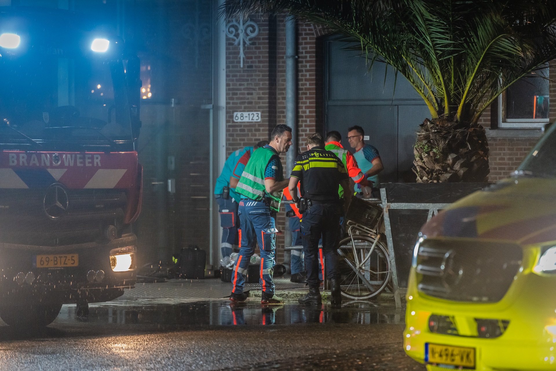 De politie heeft een plaats delict gemaakt voor onderzoek. Het slachtoffer ligt op straat onder een wit laken. Bewoners van het complex zijn deels geรซvacueerd geweest vanwege de rookontwikkeling. Een aantal van hen kunnen voorlopig nog niet naar huis.