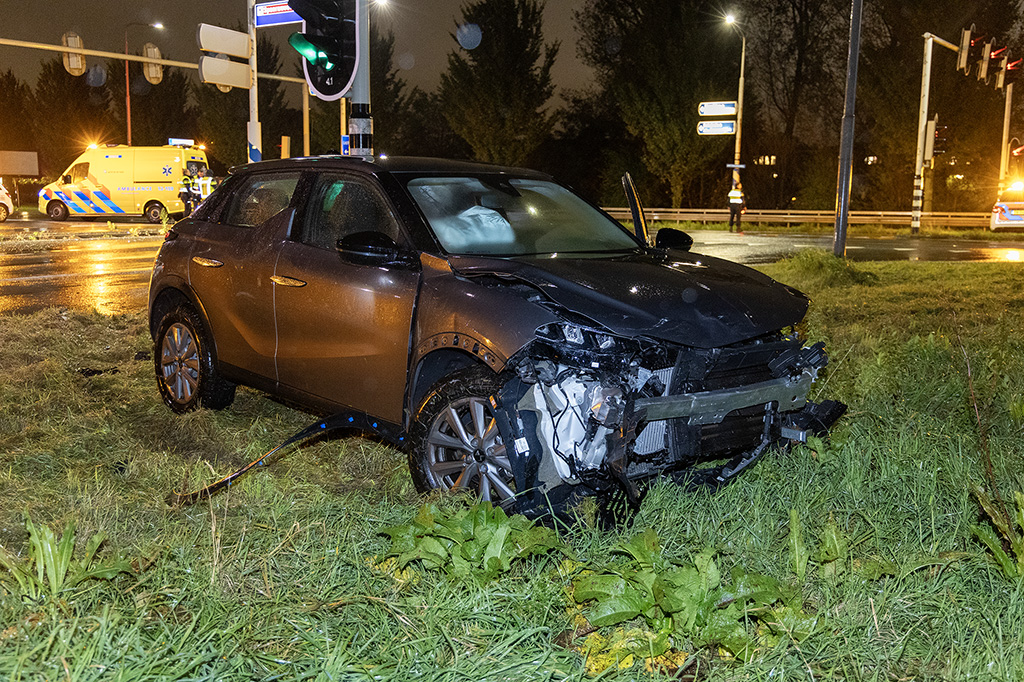 VELSEN-ZUID – Twee voertuigen raakten bij een ongeval in Velsen-Zuid zwaar beschadigd. Zaterdavond rond half twaalf ging het mis op de kruising van de Amsterdamseweg met de Rijksweg. Een van de voertuigen kwam tegen een verkeerspaal tot stilstand en de ander verderop in het gras.