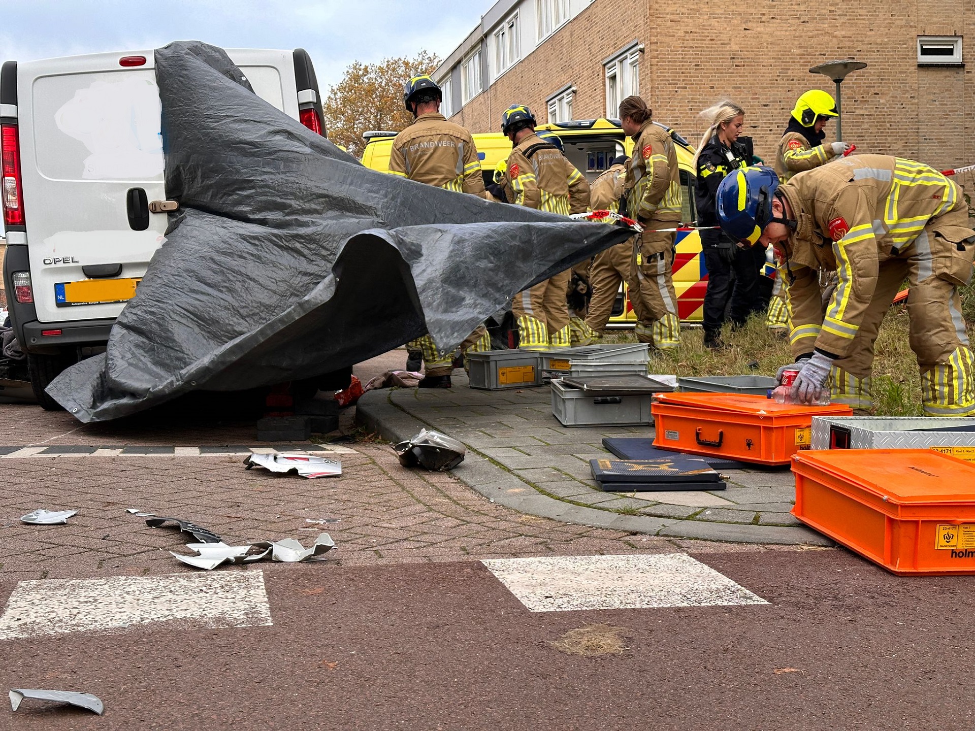 Ambulancemedewerkers ontfermden zich over het slachtoffer, na behandeling is het slachtoffer naar het ziekenhuis vervoerd.