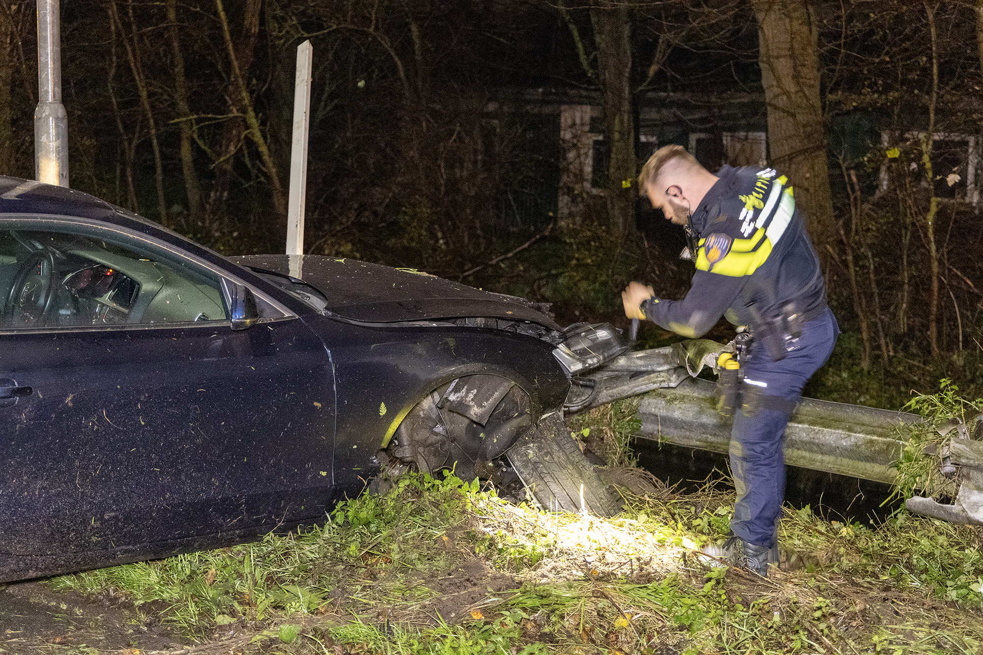 Agenten hebben de wagen doorzocht en troffen daar nog een joint aan, het is nog onbekend of de chauffeur ook daadwerkelijk onder invloed was. De wagen raakte bij de klap zwaar beschadigd en is later in de nacht door een bergingsbedrijf weggehaald. De Tolweg was door het ongeval gestremd voor het overige verkeer.