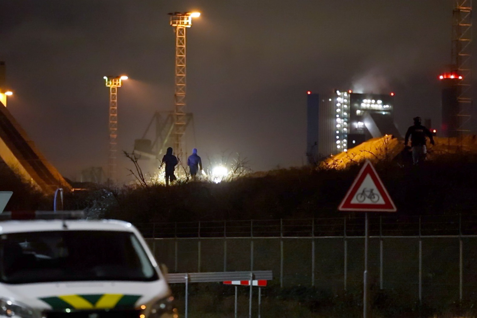 Vermoedelijk zijn dit zogeheten uithalers. Zij waren onderdeel van een grotere groep. Er is inmiddels een grote jacht geopend naar de overige verdachten. Zij lopen op het terrein van de Erts- en Kolen Overslagbedrijf Maasvlakte (EKOM).