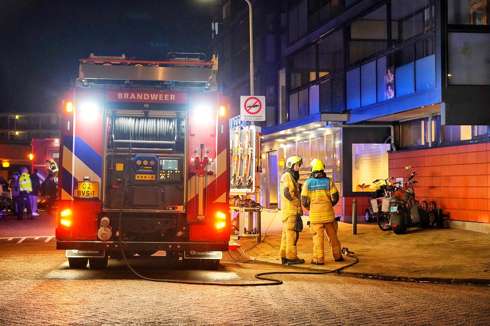 De brandweer is op elke verdieping metingen aan het doen. Bij te hoge waarden zal de brandweer gaan ventileren. De brandweer zal hiermee nog wel even bezig zijn.