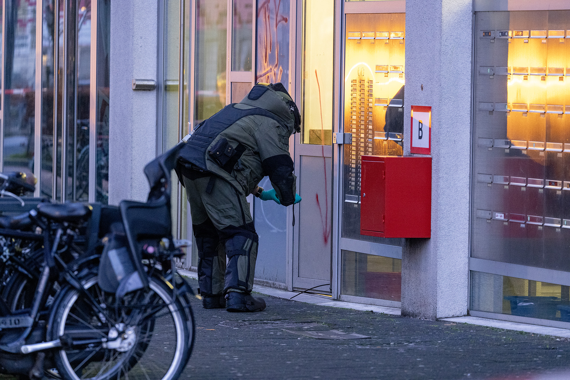De politie werd opgeroepen en uiteindelijk is de EOD ter plaatse gekomen om het object veilig te stellen. Op de deur waar de handgranaat is aangetroffen staat ‘TikTak’ met verf met een pijl naar de plaats waar de handgranaat lag.