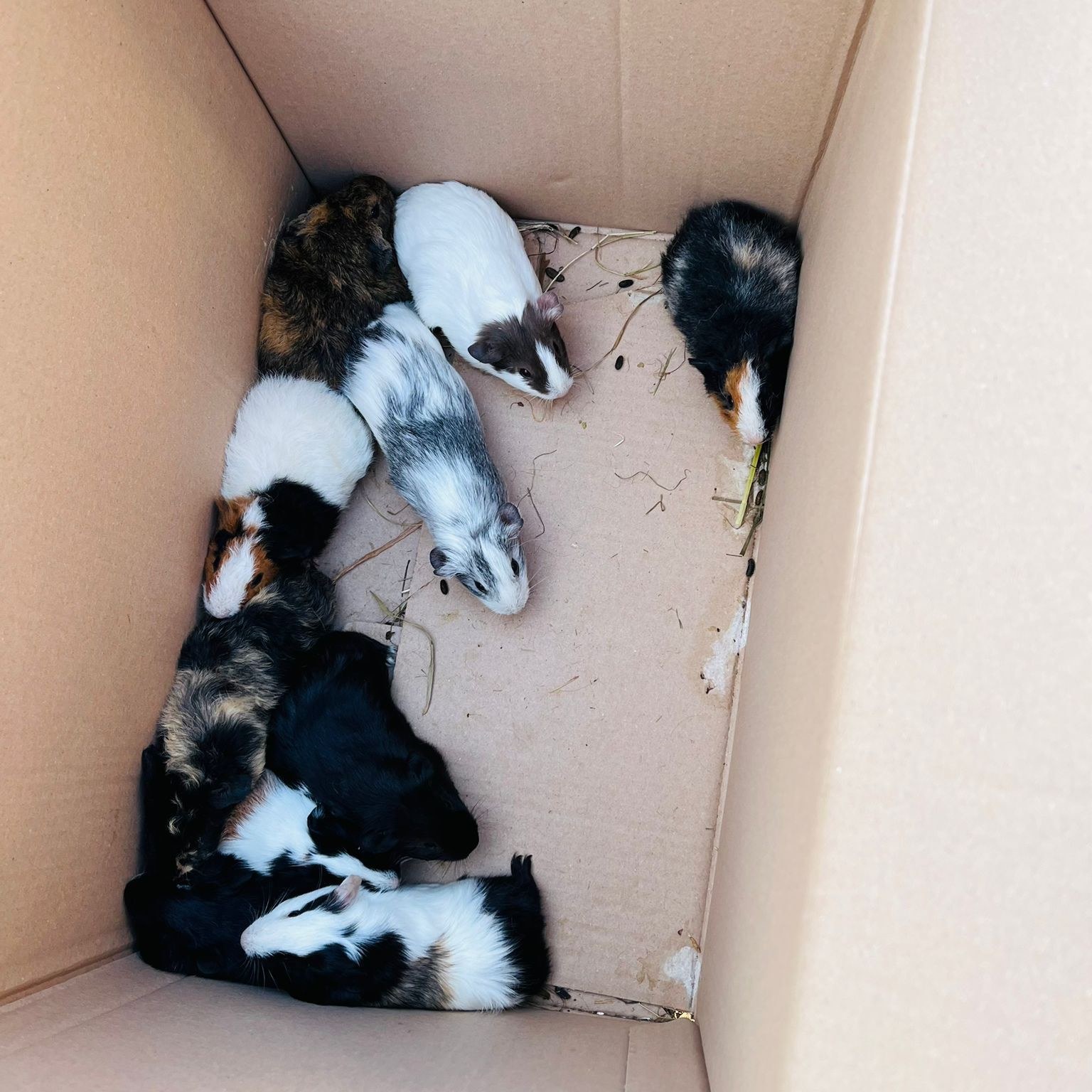 Het bleek te gaan om 96 cavia’s, 21 kippen, 12 hanen en 55 konijnen. Onder hen zijn moeders met baby’s, ongecastreerde mannetjes en vrouwtjes, en talloze zwangere dieren. Allen getekend door schimmel, bijtplekken en ander letsel.