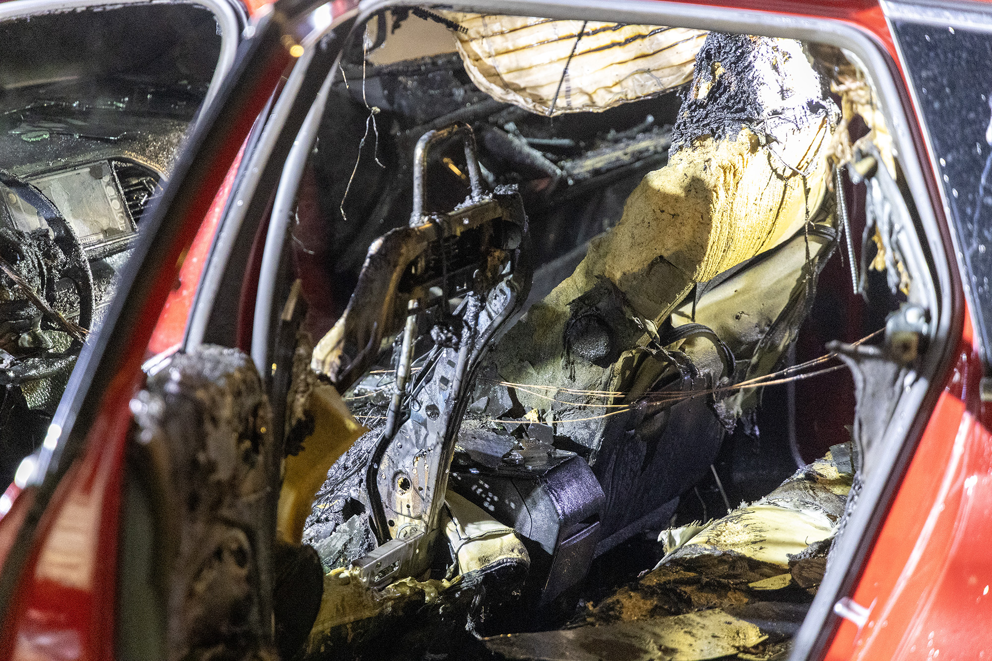 De toegesnelde brandweer heeft het vuur geblust, maar kon niet voorkomen dat de wagen van binnen volledig uitbrandde. De oorzaak van de brand is nog onbekend, de politie doet hier onderzoek naar.