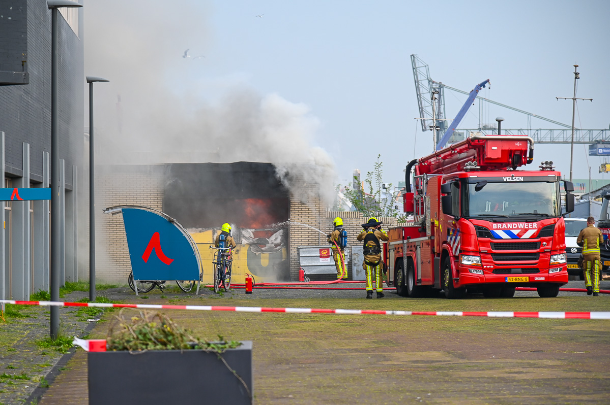 De brand ging gepaard met veel rookontwikkeling. De brandweer schaalde groot op en zette veel materieel in bij de brandbestrijding. Er werd bluswater uit de haven gehaald. Rond negen uur was het vuur geblust, meldt de Veiligheidsregio Kennemerland. Het pand deed dienst als fietsenopslag. De oorzaak zal worden onderzocht.