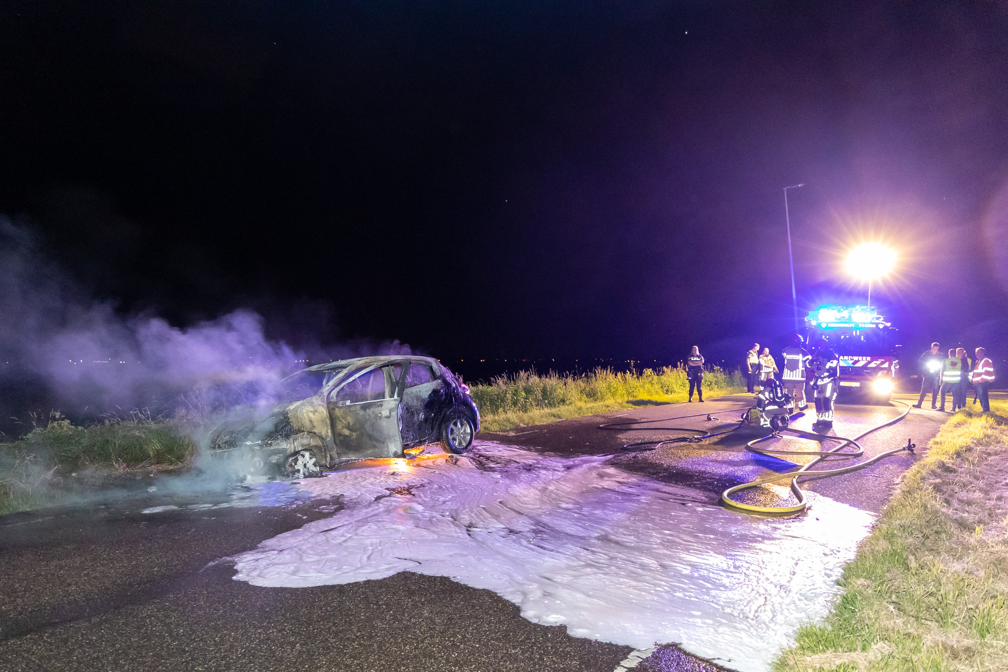 ASSENDELFT – Op de Kanaalweg/N246 nabij Assendelft is maandagavond een personenauto volledig uitgebrand.|