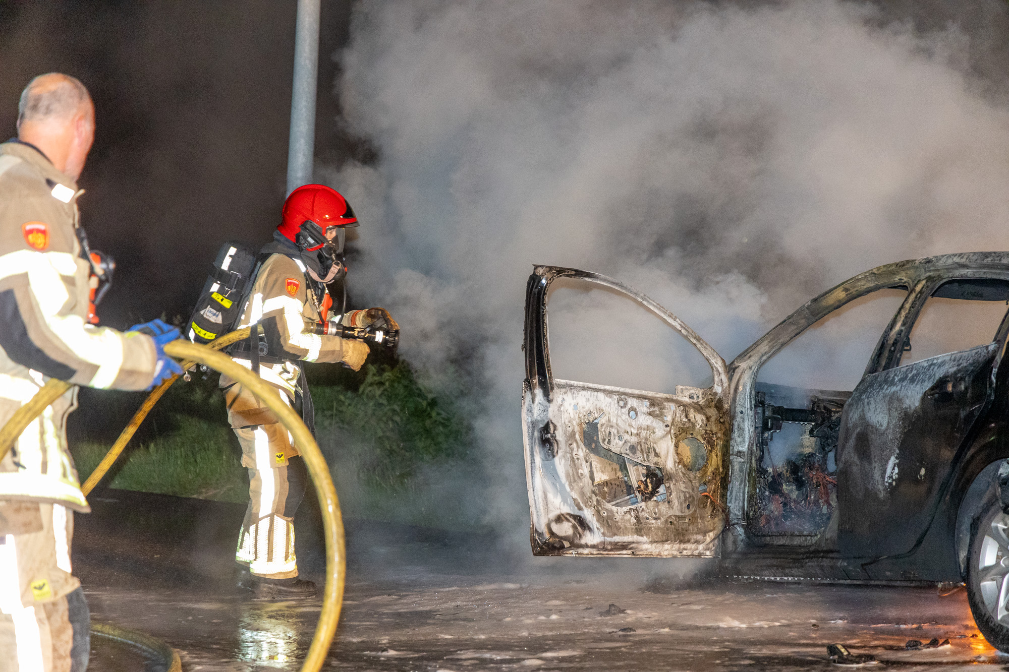 Net voor twaalven vloog het voertuig in brand, de brandweer wist al snel ter plaatse te komen, maar kon niet voorkomen dat het voertuig volledig afbrandde. De bestuurder van het voertuig wist er heelhuids vanaf te komen.