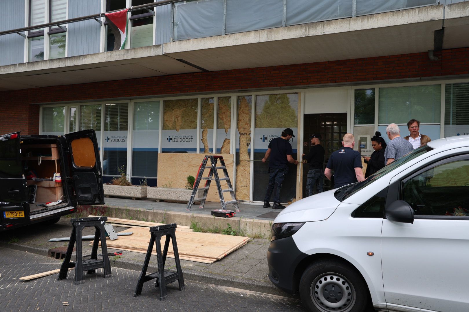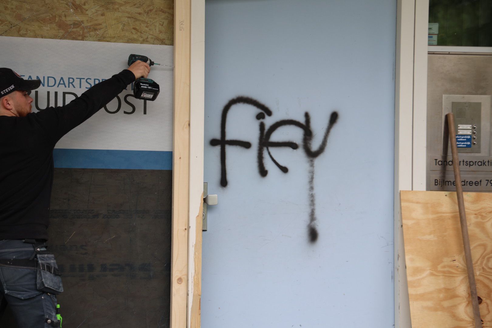 Rond 04.10 uur komt er bij de meldkamer een melding binnen van buurtbewoners die wakker schrikken van een harde knal. Agenten gaan direct ter plaatse en zien dat de pui van een bedrijfspand flink beschadigd is. Ruiten zijn gesneuveld en de grond ligt bezaaid met glasscherven. Ook is de voorzijde van het pand met graffiti bespoten.